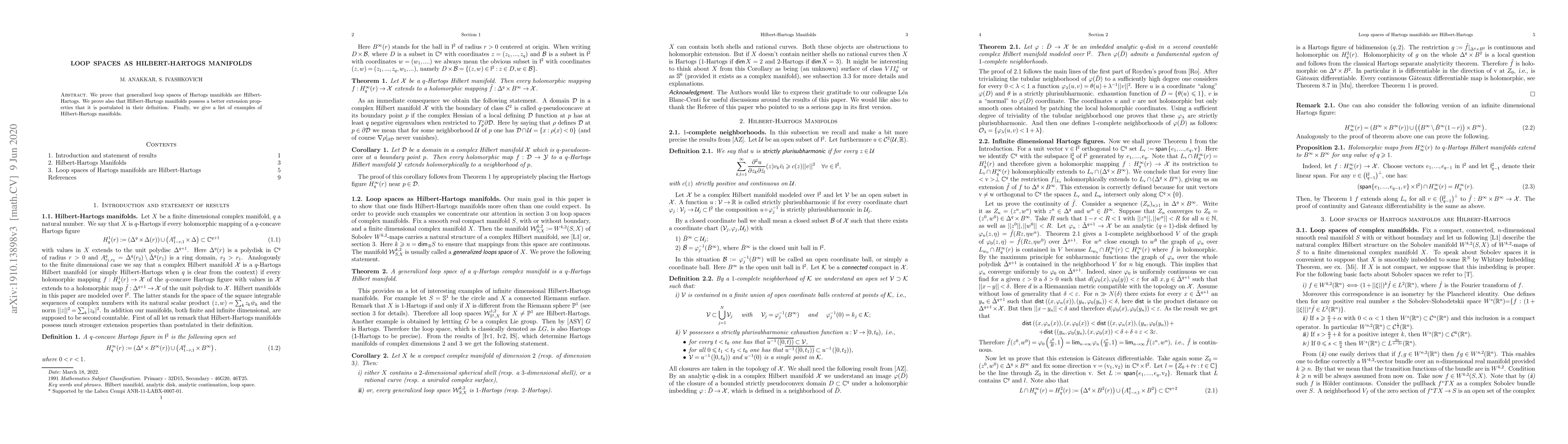 We prove that generalized loop spaces of Hartogs manifolds are Hilbert-Hartogs. We prove also that Hilbert-Hartogs manifolds possess a better extension properties that it is postulated in their definition. Finally, we give a list of examples of Hilbert-Hartogs manifolds.