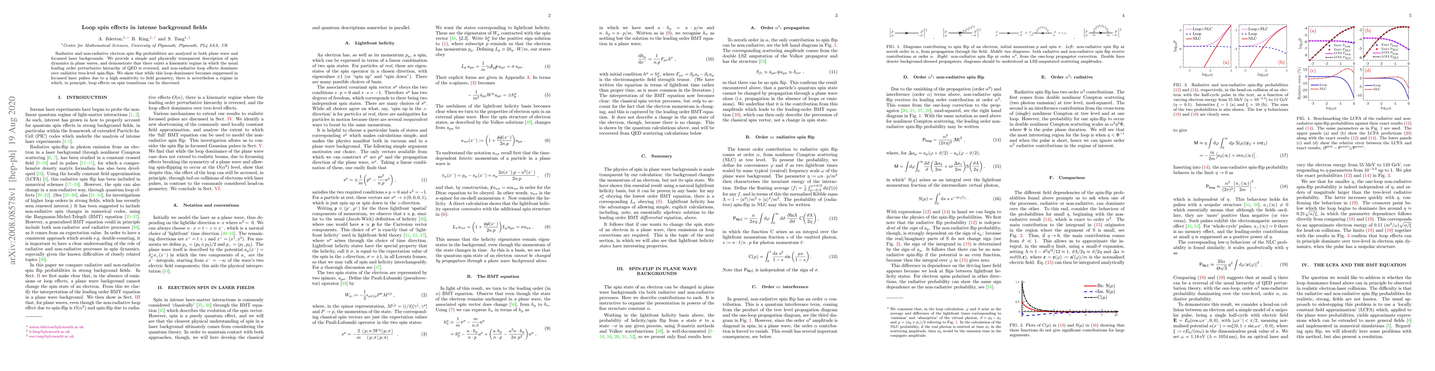 Radiative and non-radiative electron spin flip probabilities are analysed in both plane wave and focussed laser backgrounds. We provide a simple and physically transparent description of spin dynamics in plane waves, and demonstrate that there exists a kinematic regime in which the usual leading order perturbative hierarchy of QED is reversed, and non-radiative loop effects dominate over radiative tree-level spin-flips. We show that while this loop-dominance becomes suppressed in focussed laser pulses due to a high sensitivity to field geometry, there is nevertheless a regime in which, in principle, loop effects on spin transitions can be discerned.
