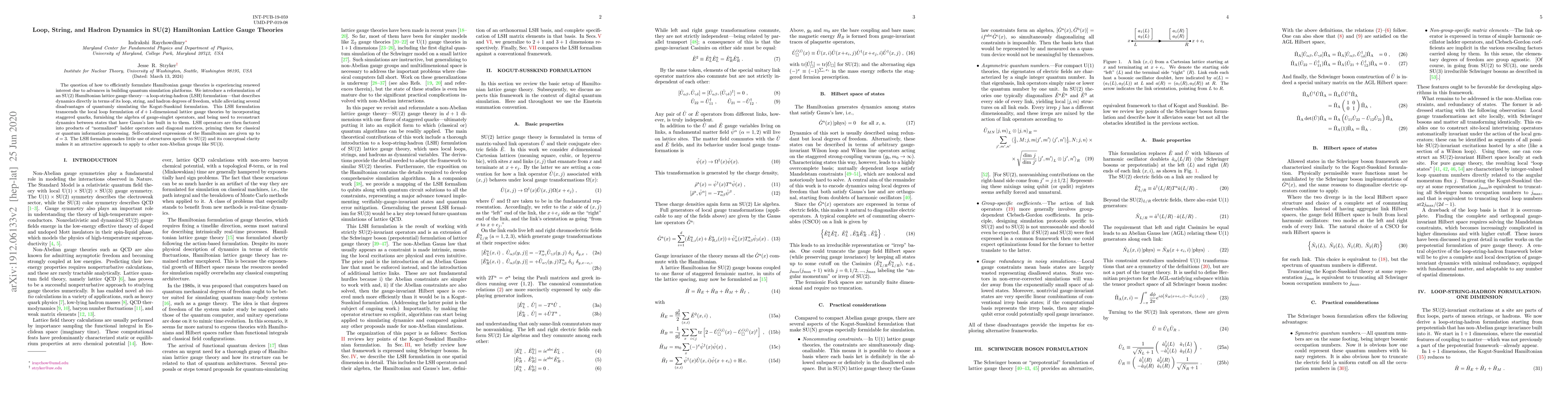 The question of how to efficiently formulate Hamiltonian gauge theories is experiencing renewed interest due to advances in building quantum simulation platforms. We introduce a reformulation of an SU(2) Hamiltonian lattice gauge theory---a loop-string-hadron (LSH) formulation---that describes dynamics directly in terms of its loop, string, and hadron degrees of freedom, while alleviating several disadvantages of quantumly simulating the Kogut-Susskind formulation. This LSH formulation transcends the local loop formulation of $d+1$-dimensional lattice gauge theories by incorporating staggered quarks, furnishing the algebra of gauge-singlet operators, and being used to reconstruct dynamics between states that have Gauss's law built in to them. LSH operators are then factored into products of "normalized" ladder operators and diagonal matrices, priming them for classical or quantum information processing. Self-contained expressions of the Hamiltonian are given up to $d=3$. The LSH formalism makes little use of structures specific to SU(2) and its conceptual clarity makes it an attractive approach to apply to other non-Abelian groups like SU(3).