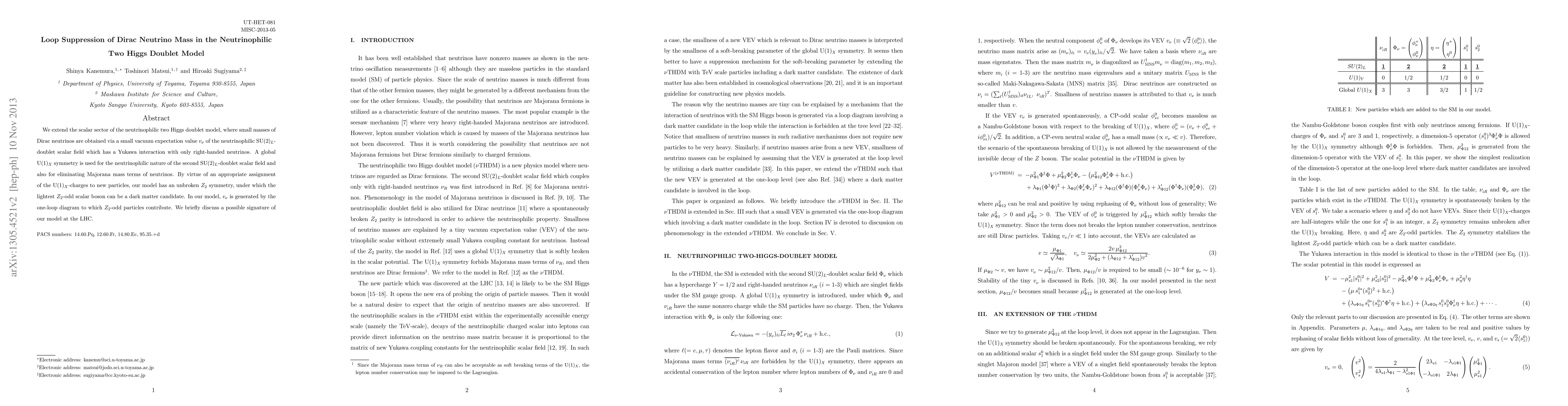 This paper proposes an extended neutrinophilic two Higgs doublet model with a global U(1)_X symmetry, generating small Dirac neutrino masses via a one-loop vacuum expectation value from a neutrinophilic scalar field. The model also considers a Z_2 symmetry for a potential dark matter candidate and briefly discusses its LHC signatures.