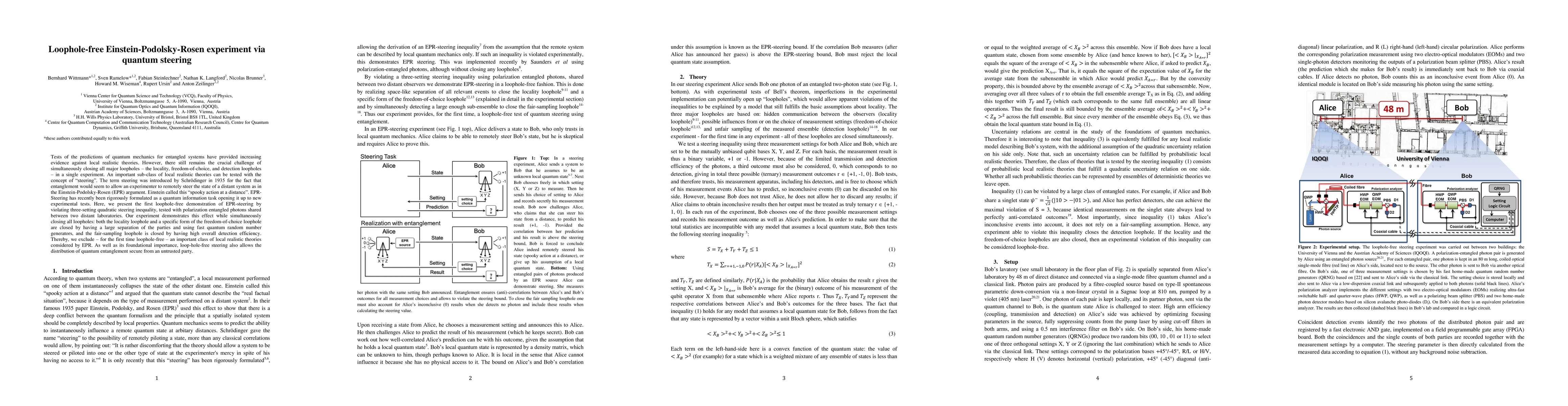 This paper presents the first loophole-free experiment demonstrating EPR-steering using polarization entangled photons, closing all major loopholes to test local realistic theories. The experiment successfully excludes an important class of local realistic theories, reinforcing quantum mechanics' predictions.