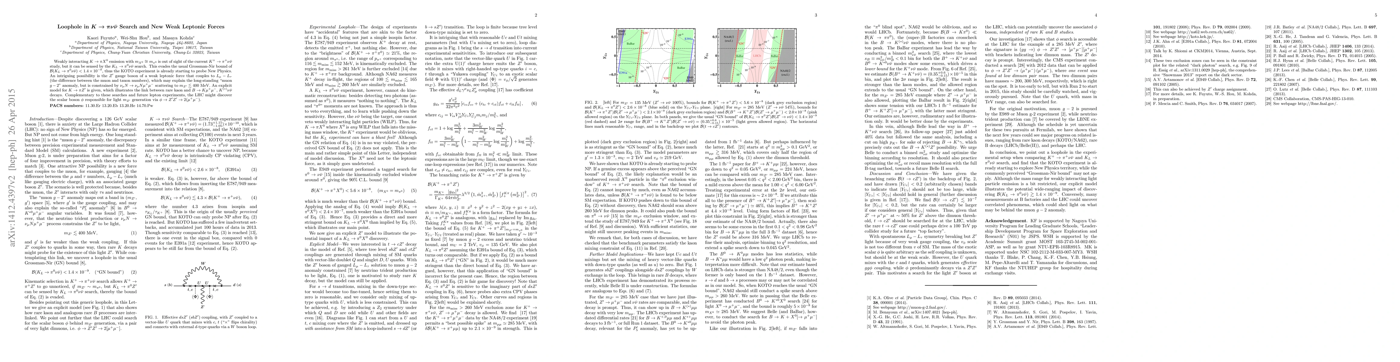 This paper explores a loophole in K_L --> pi^0 nu nubar searches that evades current bounds, hinting at new physics possibly linked to a Z' gauge boson mediating a weak leptonic force. The KOTO experiment's findings suggest the potential discovery of this new force, which could also explain the "muon g-2" anomaly, with the LHC potentially identifying a scalar boson phi responsible for generating the Z'.