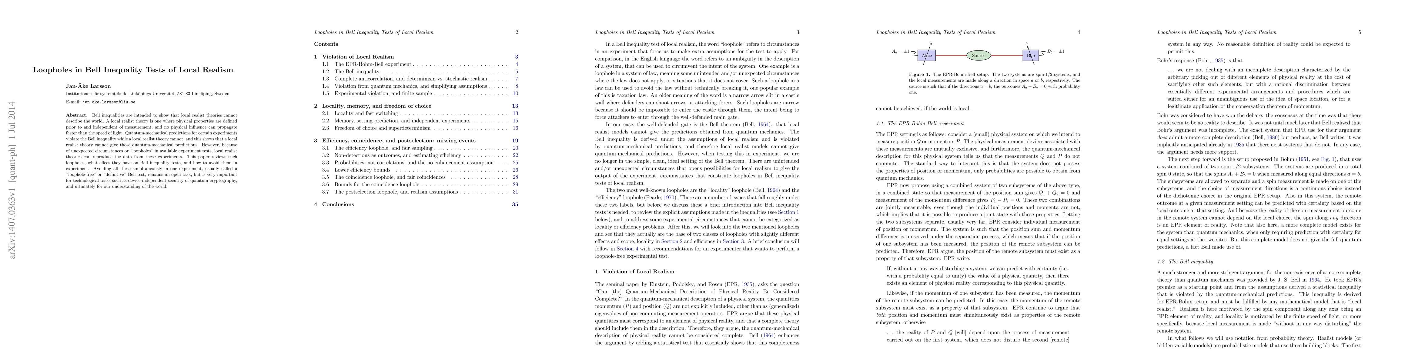 This paper reviews the "loopholes" in Bell inequality tests that allow local realist theories to reproduce experimental results, despite quantum mechanics violating the Bell inequality. It discusses the implications of these loopholes for experiments and suggests methods to avoid them, emphasizing the importance of loophole-free tests for quantum cryptography and foundational physics.