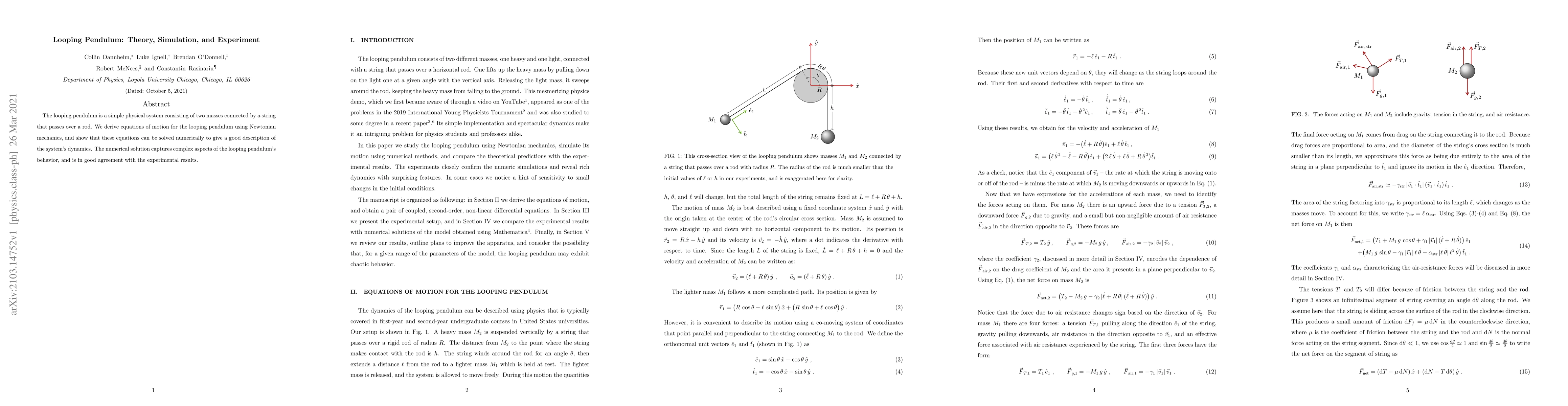 The research used Newtonian mechanics to derive equations of motion for the looping pendulum.