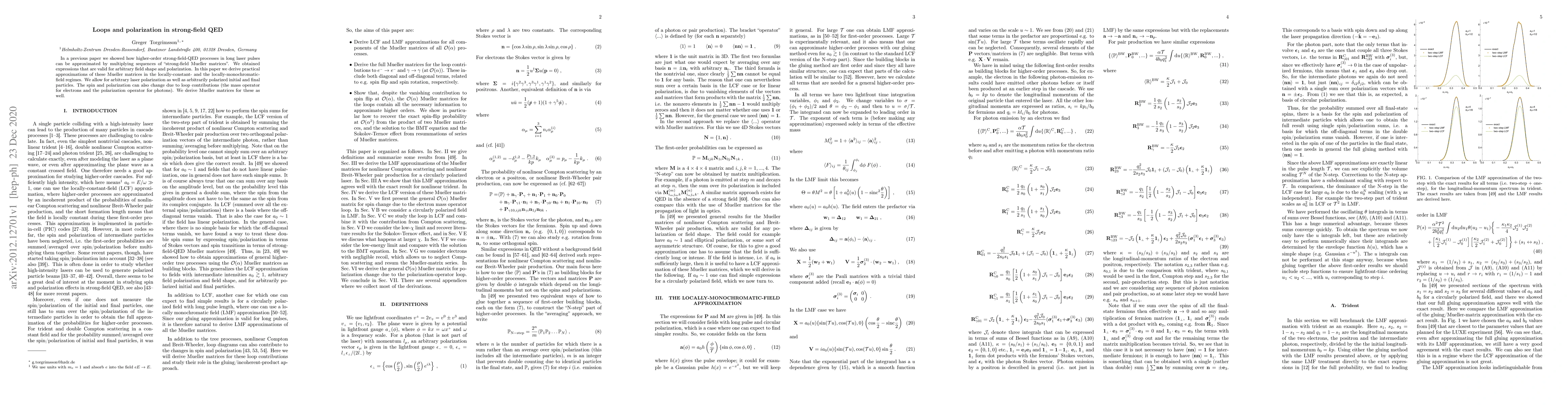 This paper extends previous work on strong-field QED processes by deriving practical approximations for Mueller matrices in constant and monochromatic field regimes, accommodating arbitrary laser polarization and particle states. It also accounts for spin and polarization changes due to loop contributions.