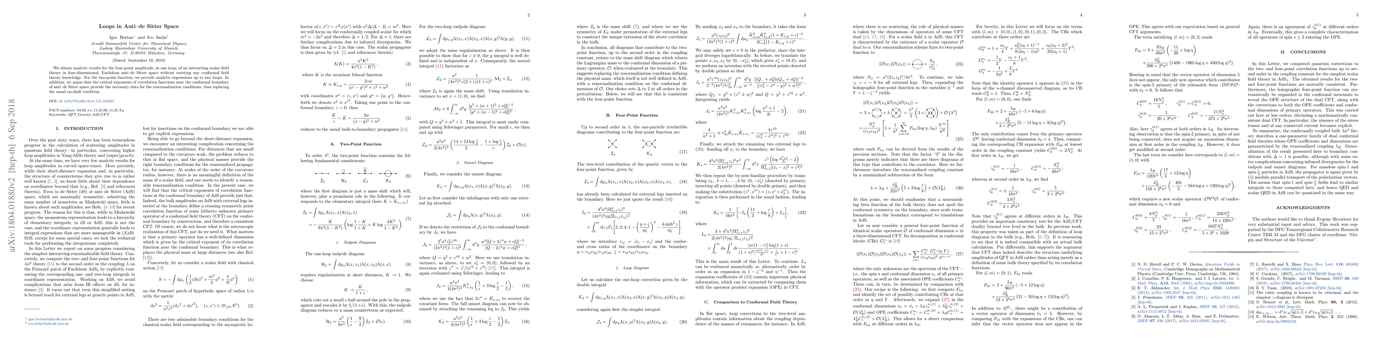 This paper presents analytic results for one-loop four-point amplitudes and two-point functions up to two loops in a four-dimensional Euclidean anti-de Sitter space, without relying on conformal field theory. It also proposes using critical exponents near the conformal boundary for renormalization conditions instead of on-shell conditions.