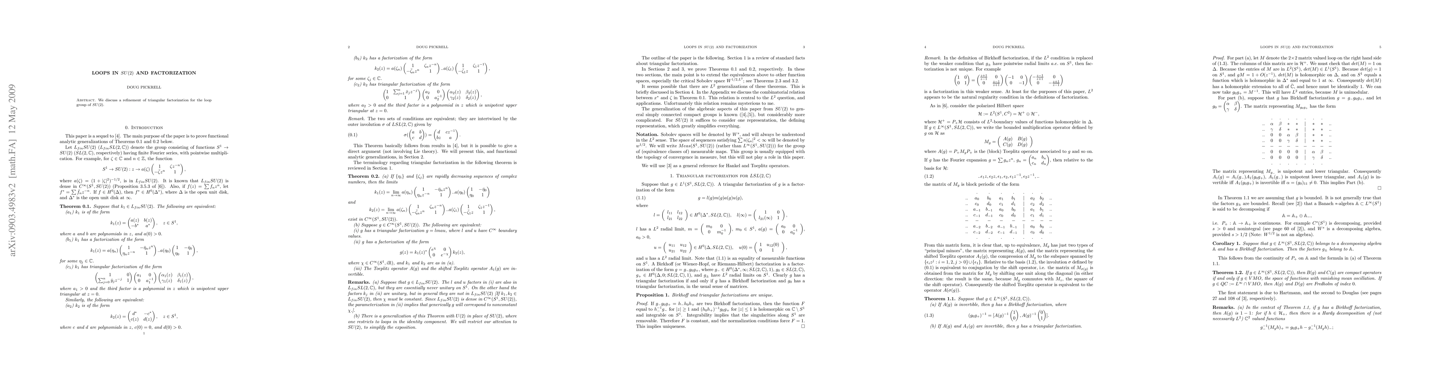 Summary: This paper refines the triangular factorization method for loops within the special unitary group SU(2), aiming to improve the understanding of loop dynamics in this context. The proposed refinement could have implications for quantum computing and related fields.