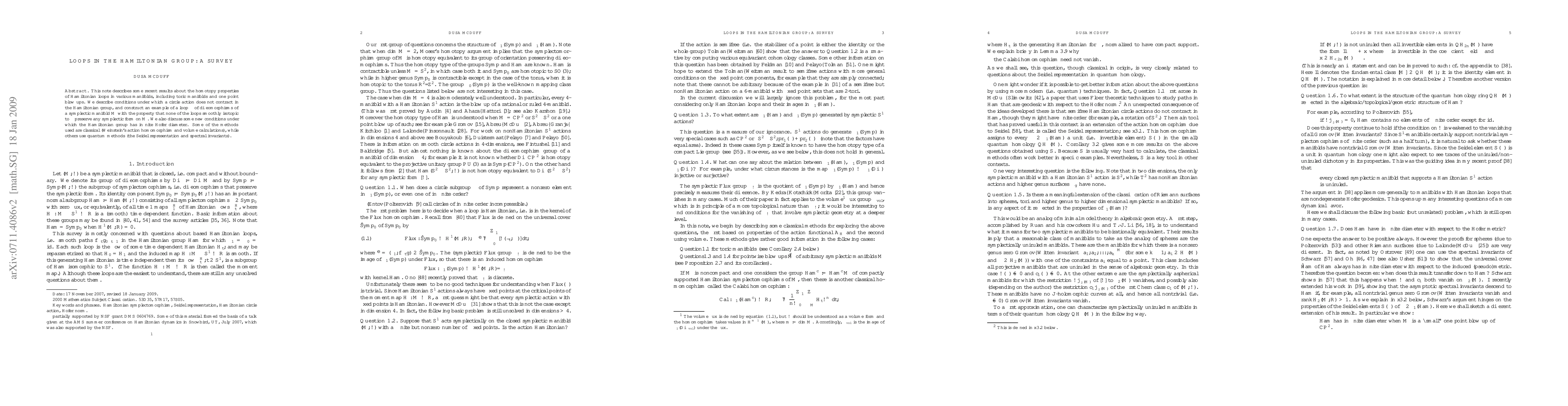 This note describes some recent results about the homotopy properties of Hamiltonian loops in various manifolds, including toric manifolds and one point blow ups. We describe conditions under which a circle action does not contract in the Hamiltonian group, and construct an example of a loop $\ga$ of diffeomorphisms of a symplectic manifold M with the property that none of the loops smoothly isotopic to $\ga$ preserve any symplectic form on M. We also discuss some new conditions under which the Hamiltonian group has infinite Hofer diameter. Some of the methods used are classical (Weinstein's action homomorphism and volume calculations), while others use quantum methods (the Seidel representation and spectral invariants).