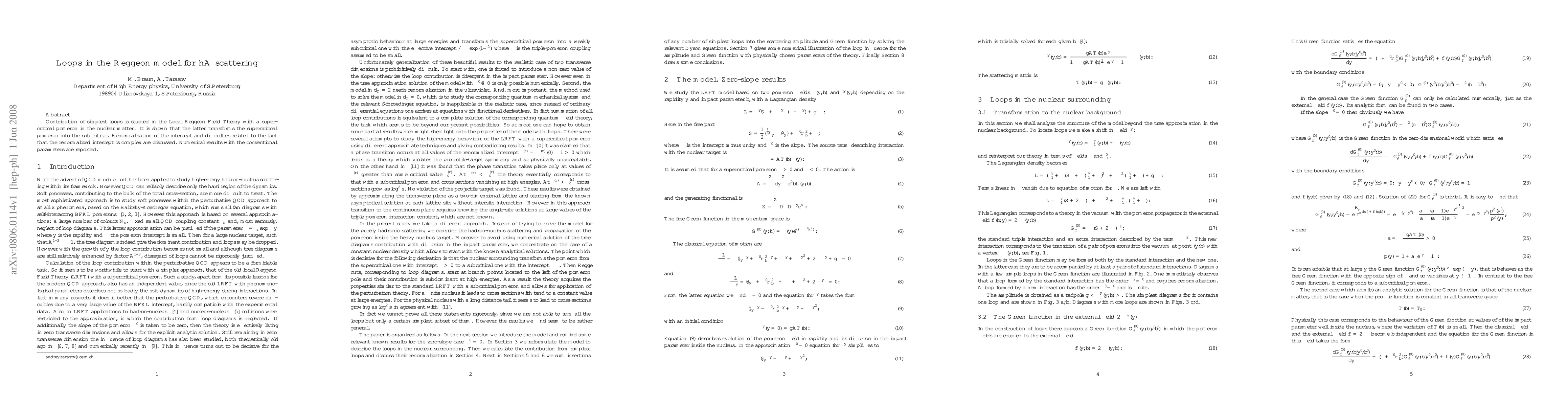 Contribution of simplest loops is studied in the Local Reggeon Field Theory with a supercritical pomeron in the nuclear matter. It is shown that the latter transforms the supercritical pomeron into the subcritical. Renormalization of the intercept and difficulties related to the fact that the renormalized intercept is complex are discussed. Numerical results with the conventional parameters are reported.