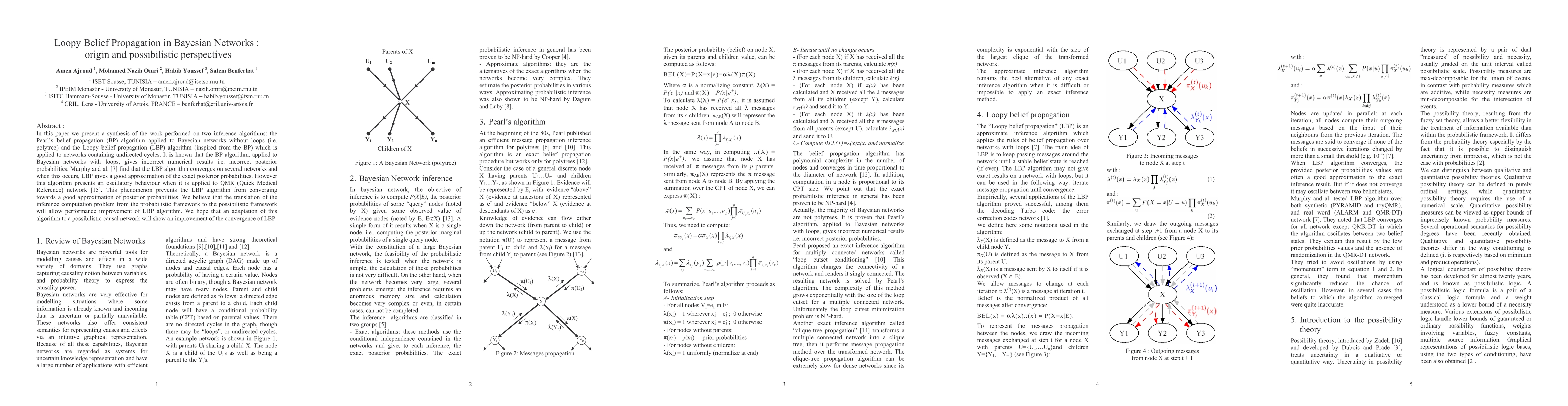 This paper synthesizes the development of Pearl's belief propagation algorithm for polytrees and the loopy belief propagation (LBP) algorithm for networks with cycles, noting LBP's convergence issues. The authors propose translating inference computations to a possibilistic framework to improve LBP's performance and convergence in causal networks.