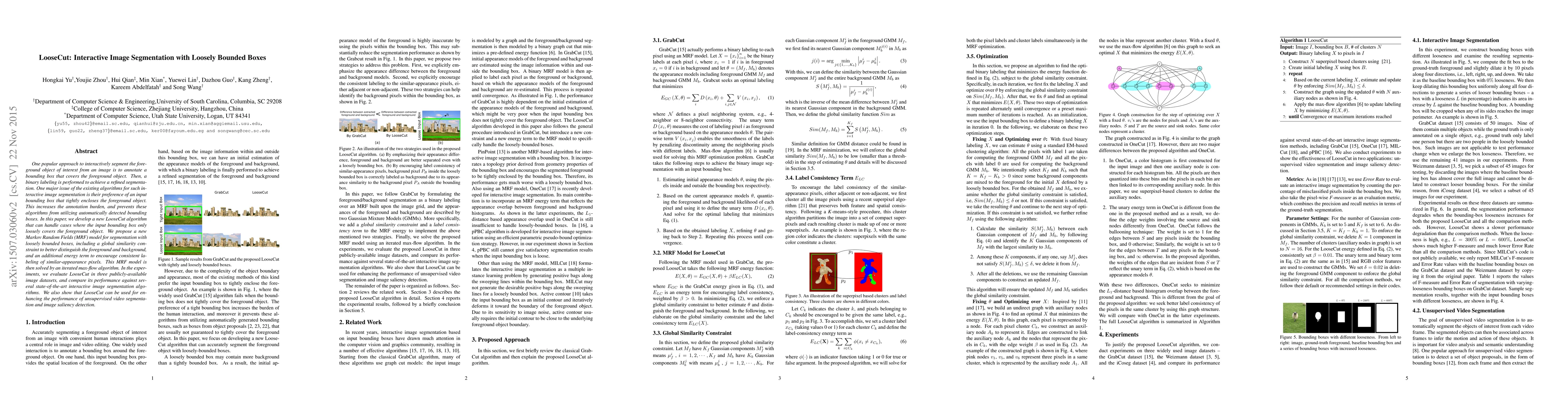 LooseCut introduces an interactive image segmentation method that accommodates loosely bounded boxes, addressing the annotation burden of tightly enclosing foreground objects. The proposed Markov Random Fields model with a global similarity constraint and an additional energy term enhances segmentation accuracy, outperforming state-of-the-art algorithms in various datasets.
