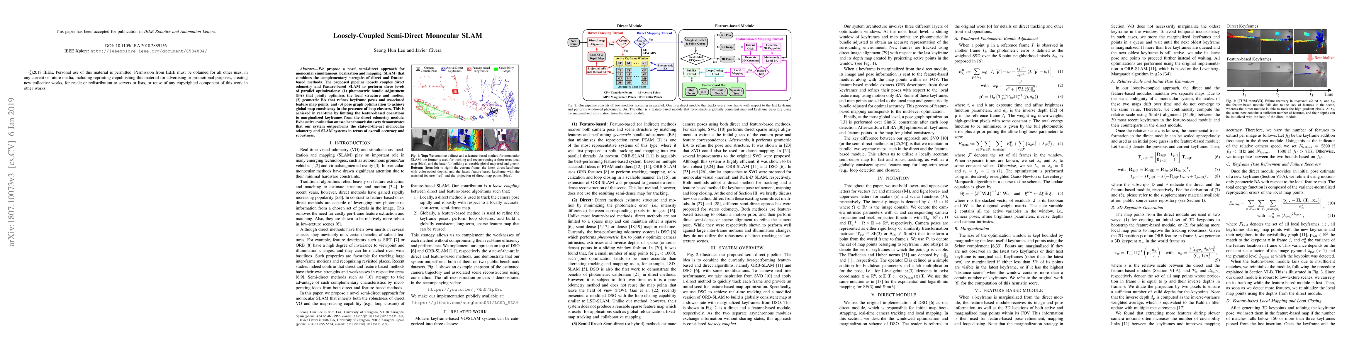 This paper introduces a semi-direct monocular SLAM method that integrates direct and feature-based techniques through loosely coupled optimization levels. The approach achieves real-time performance and outperforms existing methods in accuracy and robustness, as demonstrated on benchmark datasets.