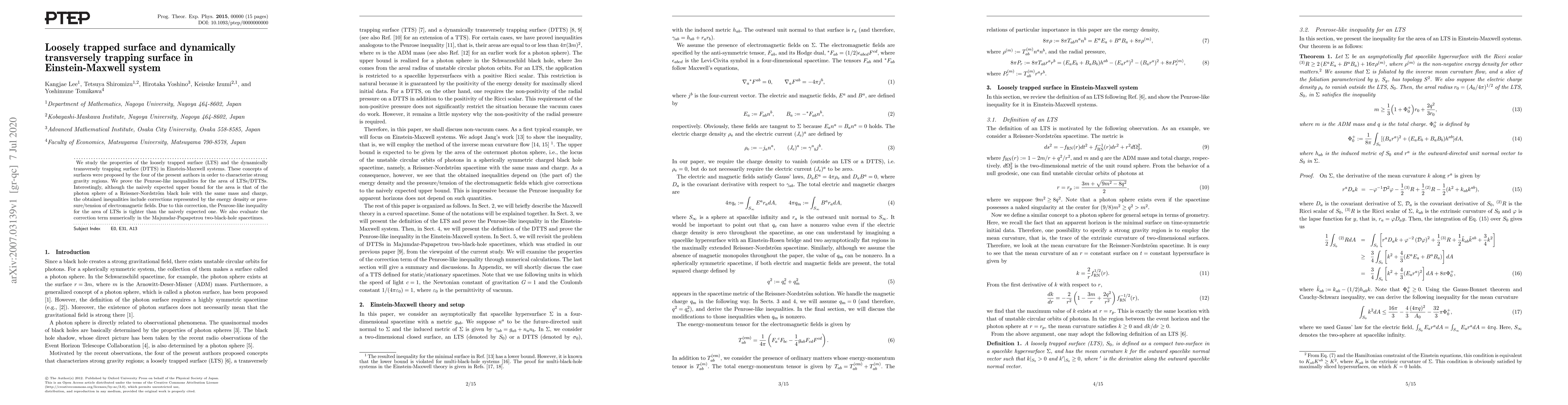 This paper investigates the properties of loosely trapped surfaces (LTS) and dynamically transversely trapping surfaces (DTTS) in Einstein-Maxwell systems, proving tighter Penrose-like inequalities for their areas that include corrections from electromagnetic field energy density or pressure/tension. Numerical evaluations of these corrections are performed in Majumdar-Papapetrou two-black-hole spacetimes.