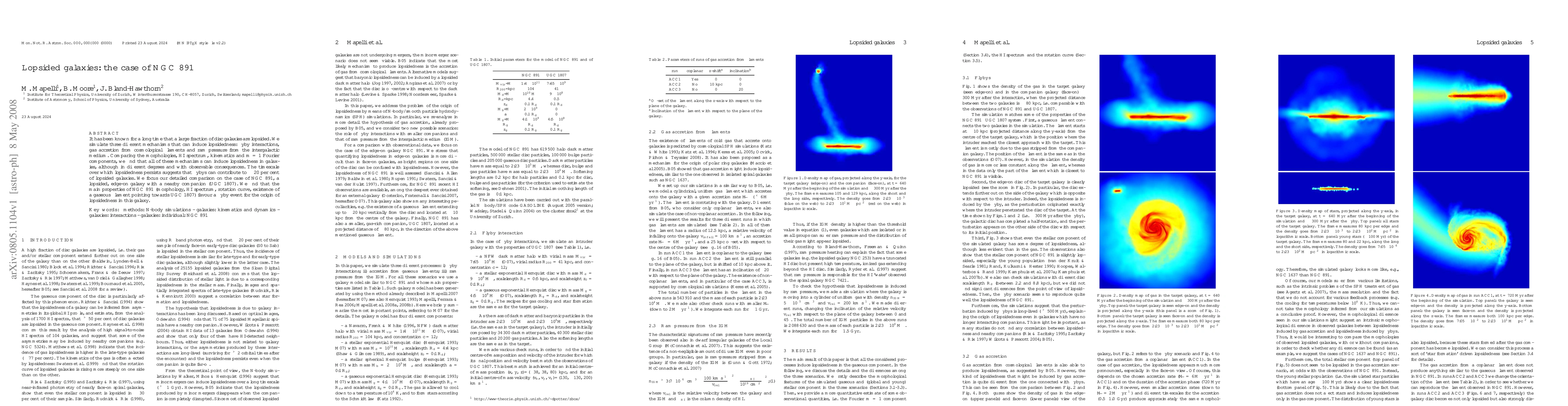 This paper investigates the mechanisms behind the lopsidedness in disc galaxies, finding that flyby interactions, gas accretion, and ram pressure can all induce this phenomenon. A detailed analysis of NGC 891 suggests that a flyby event with its nearby companion, UGC 1807, is the most likely cause of its lopsidedness.