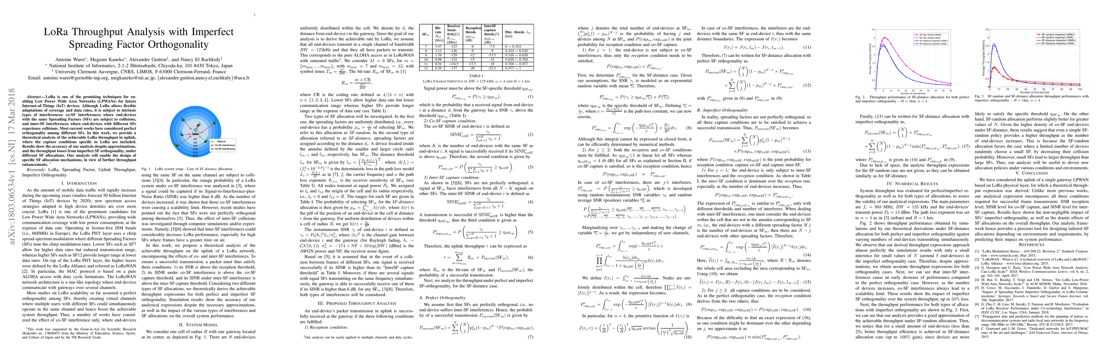 This paper analyzes LoRa throughput in uplink scenarios, considering the impact of imperfect spreading factor orthogonality. It provides theoretical insights into throughput losses due to co-SF and inter-SF interferences, offering a foundation for developing improved SF allocation strategies to enhance network performance.