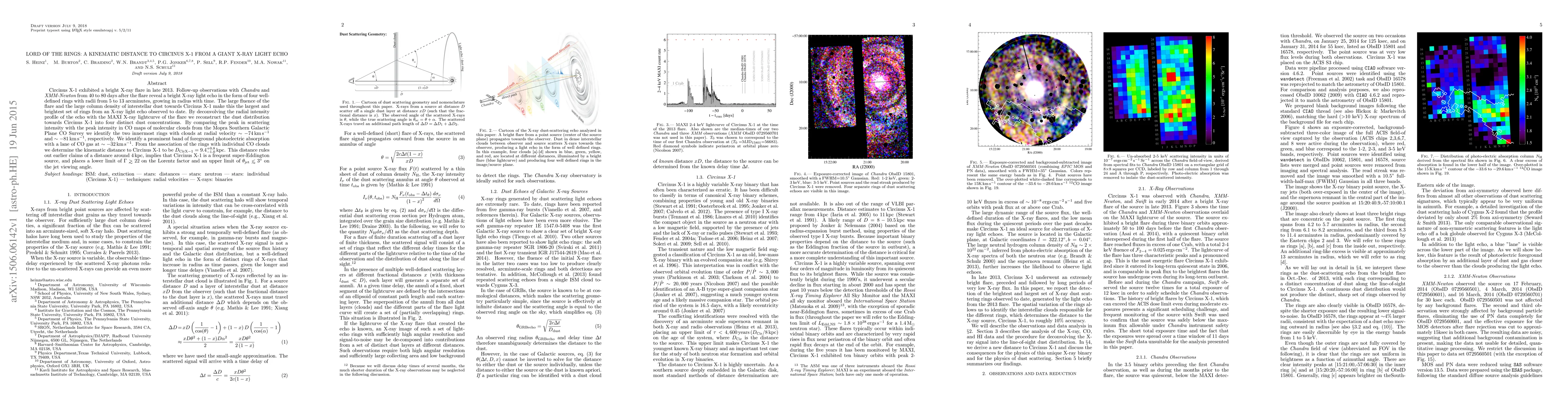 Circinus X-1 exhibited a bright X-ray flare in late 2013. Follow-up observations with Chandra and XMM-Newton from 40 to 80 days after the flare reveal a bright X-ray light echo in the form of four well-defined rings with radii from 5 to 13 arcminutes, growing in radius with time. The large fluence of the flare and the large column density of interstellar dust towards Circinus X-1 make this the largest and brightest set of rings from an X-ray light echo observed to date. By deconvolving the radial intensity profile of the echo with the MAXI X-ray lightcurve of the flare we reconstruct the dust distribution towards Circinus X-1 into four distinct dust concentrations. By comparing the peak in scattering intensity with the peak intensity in CO maps of molecular clouds from the Mopra Southern Galactic Plane CO Survey we identify the two innermost rings with clouds at radial velocity ~ -74 km/s and ~ -81 km/s, respectively. We identify a prominent band of foreground photoelectric absorption with a lane of CO gas at ~ -32 km/s. From the association of the rings with individual CO clouds we determine the kinematic distance to Circinus X-1 to be $D_{Cir X-1} = 9.4^{+0.8}_{-1.0}$ kpc. This distance rules out earlier claims of a distance around 4 kpc, implies that Circinus X-1 is a frequent super-Eddington source, and places a lower limit of $\Gamma \gtrsim 22$ on the Lorentz factor and an upper limit of $\theta_{jet} \lesssim 3^{\circ}$ on the jet viewing angle.