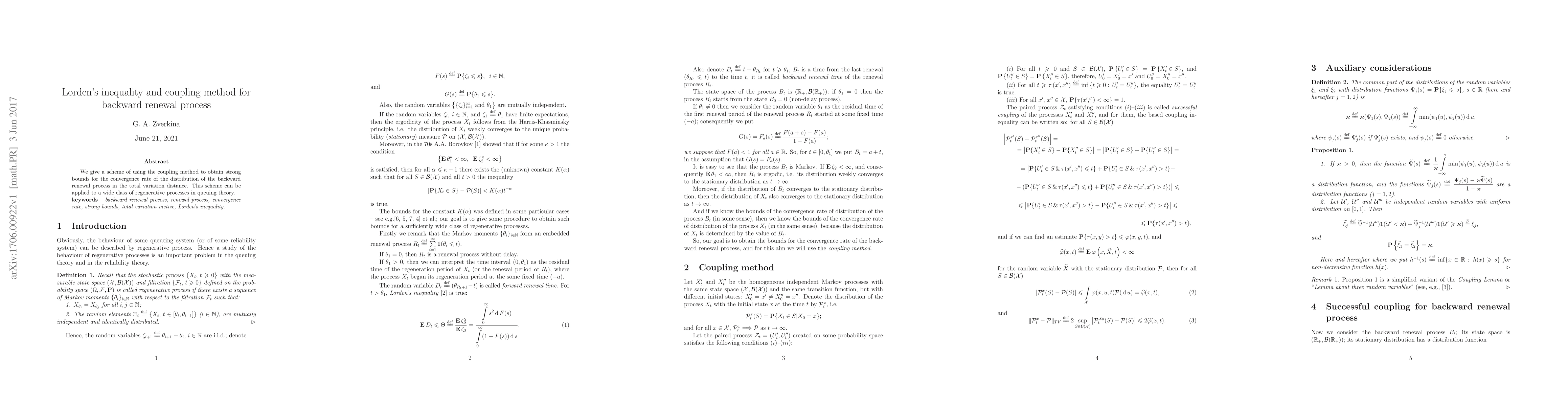 Summary: This paper uses the coupling method to derive strong bounds for the convergence rate of the backward renewal process in total variation distance, extending its applicability to various regenerative processes in queuing theory.