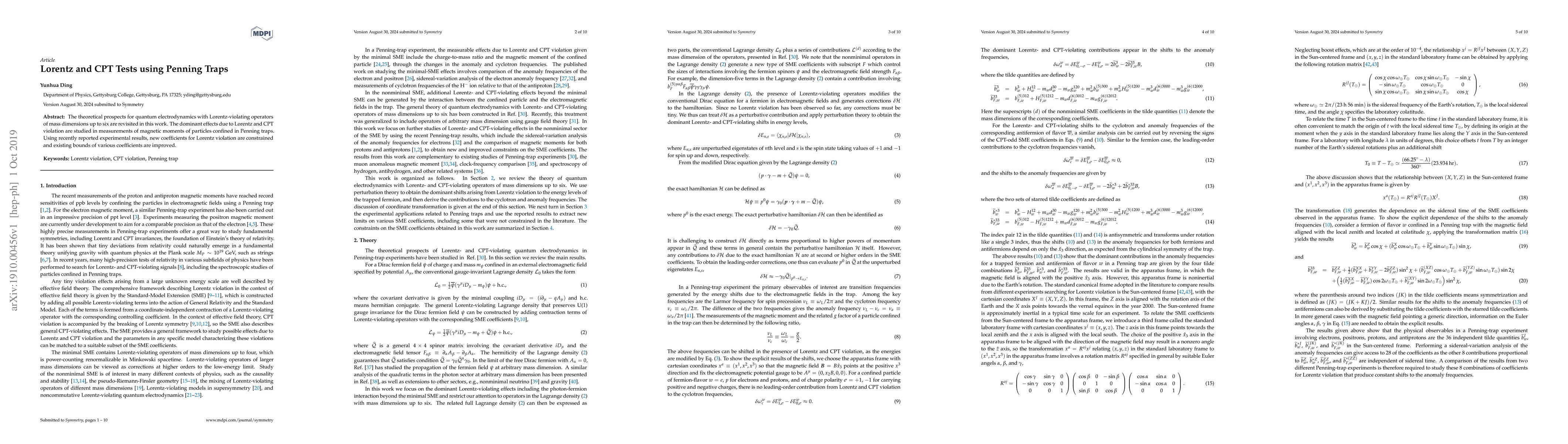 A new method for testing for Loretz violation using Penning trap experiments was developed.