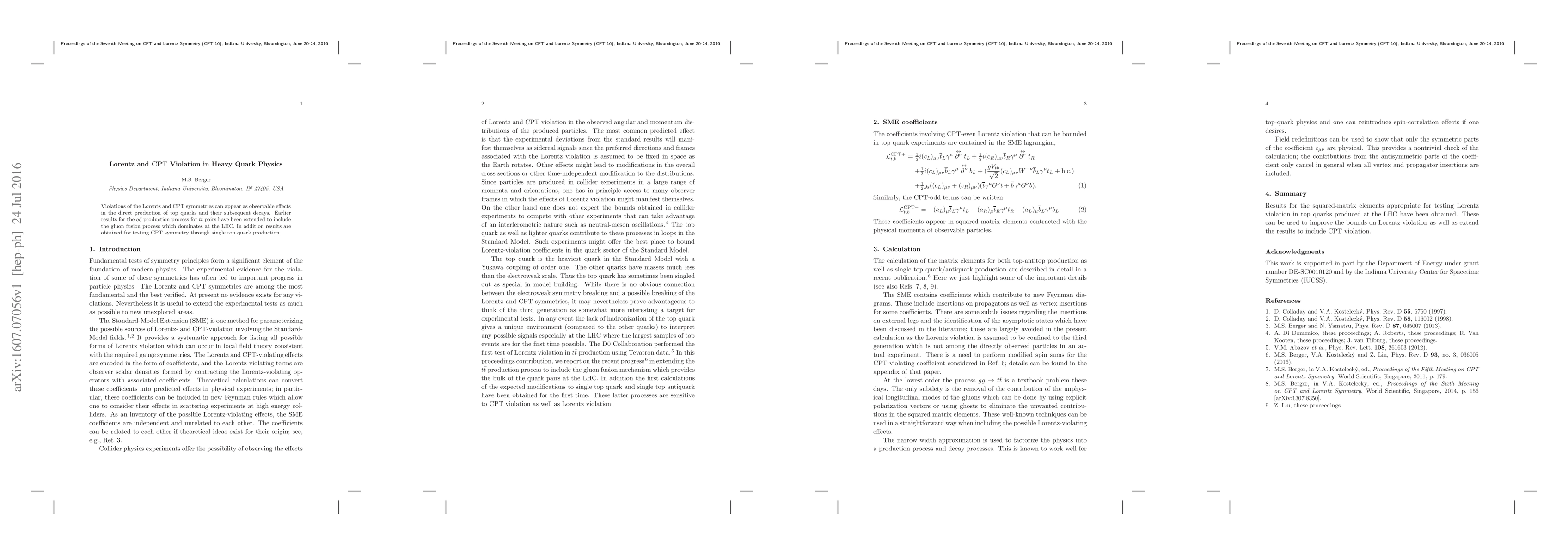 This paper investigates the potential observable effects of Lorentz and CPT symmetry violations in the production and decay of top quarks, extending previous results for $t\bar{t}$ pairs to include gluon fusion processes at the LHC and examining single top quark production for CPT symmetry testing.