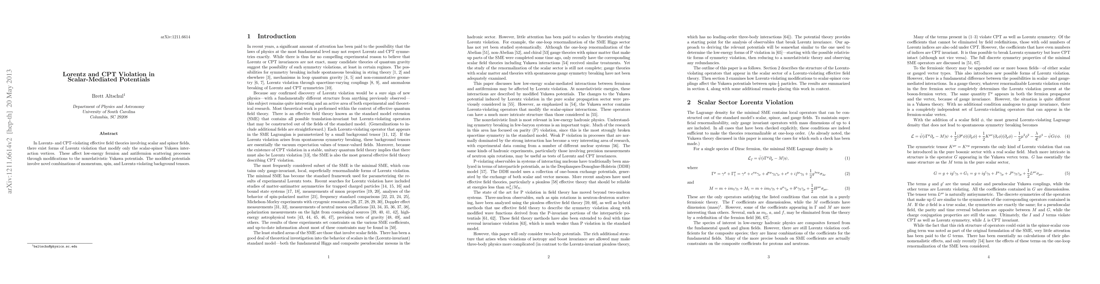 This paper investigates Lorentz and CPT violation in effective field theories where scalar-mediated interactions are modified, affecting low-energy fermion and antifermion scattering via altered Yukawa potentials incorporating momentum, spin, and background tensors. The study focuses on the implications of these modifications on nonrelativistic interactions.