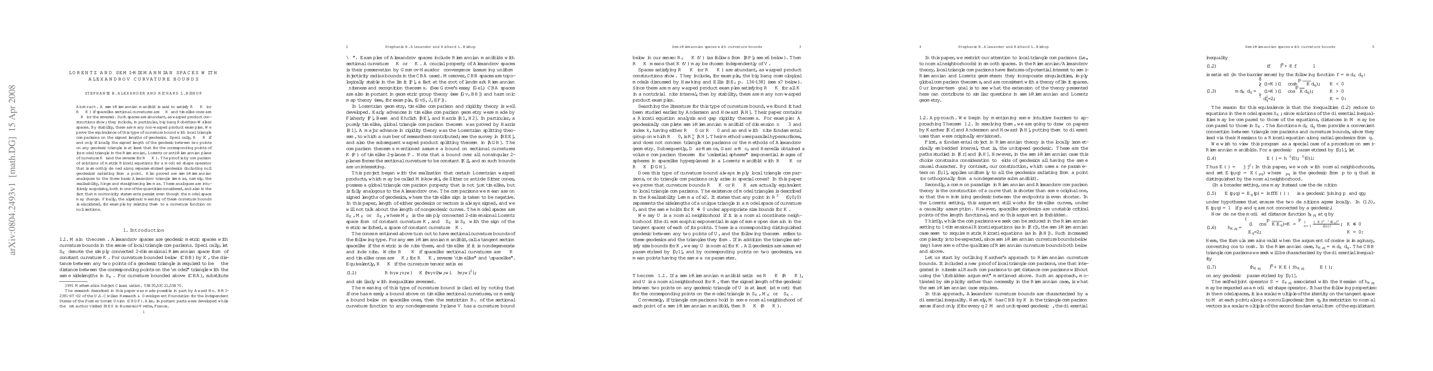 A semi-Riemannian manifold is said to satisfy $R\ge K$ (or $R\le K$) if spacelike sectional curvatures are $\ge K$ and timelike ones are $\le K$ (or the reverse). Such spaces are abundant, as warped product constructions show; they include, in particular, big bang Robertson-Walker spaces. By stability, there are many non-warped product examples. We prove the equivalence of this type of curvature bound with local triangle comparisons on the signed lengths of geodesics. Specifically, $R\ge K$ if and only if locally the signed length of the geodesic between two points on any geodesic triangle is at least that for the corresponding points of its model triangle in the Riemannian, Lorentz or anti-Riemannian plane of curvature $K$ (and the reverse for $R\le K$). The proof is by comparison of solutions of matrix Riccati equations for a modified shape operator that is smoothly defined along reparametrized geodesics (including null geodesics) radiating from a point. Also proved are semi-Riemannian analogues to the three basic Alexandrov triangle lemmas, namely, the realizability, hinge and straightening lemmas. These analogues are intuitively surprising, both in one of the quantities considered, and also in the fact that monotonicity statements persist even though the model space may change. Finally, the algebraic meaning of these curvature bounds is elucidated, for example by relating them to a curvature function on null sections.
