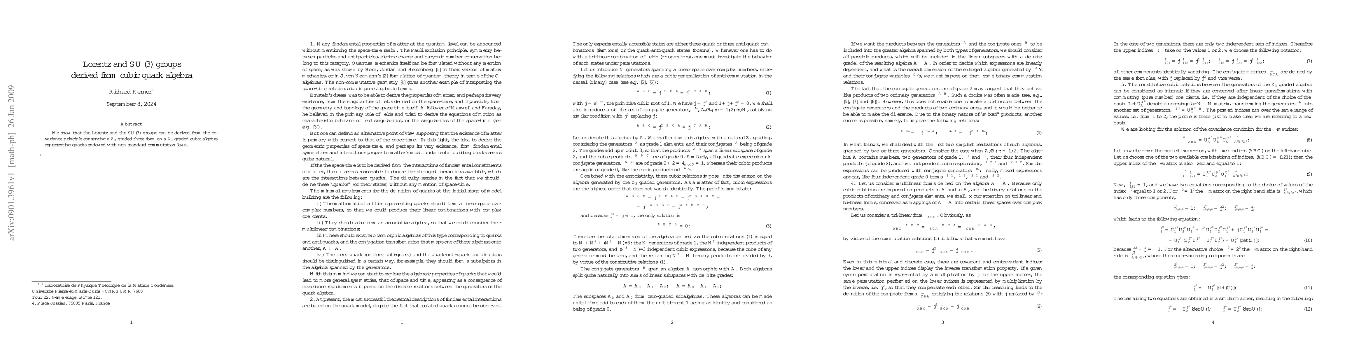 Researchers show that groups governing space and quantum mechanics can arise from a specific algebra representing quarks with non-standard properties.