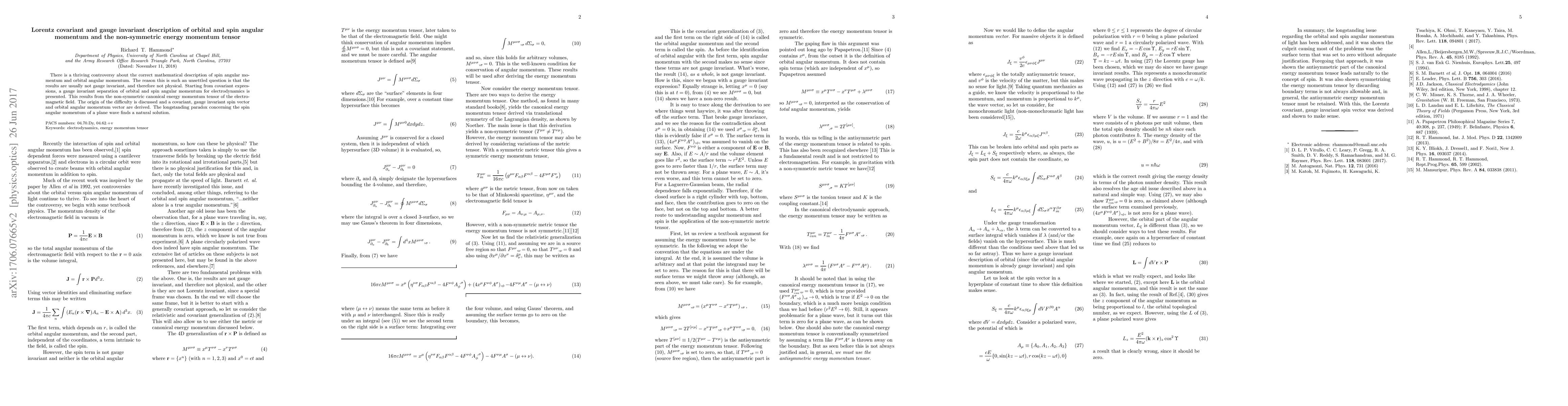 This paper presents a gauge-independent method for separating orbital and spin angular momentum in electrodynamics using the non-symmetric canonical energy momentum tensor, resolving the paradox of spin angular momentum in plane waves and deriving a covariant gauge invariant spin vector.