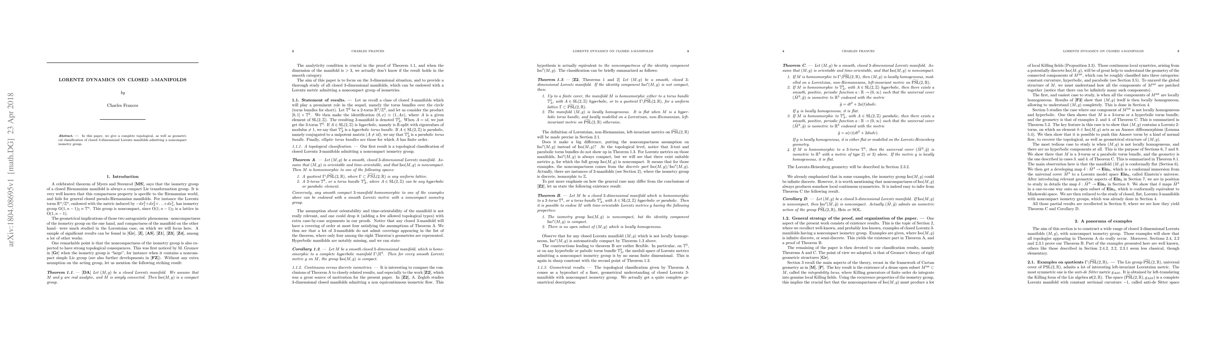 Researchers classify closed 3D Lorentz manifolds with noncompact isometry groups, providing a complete topological and geometrical understanding of their properties.
