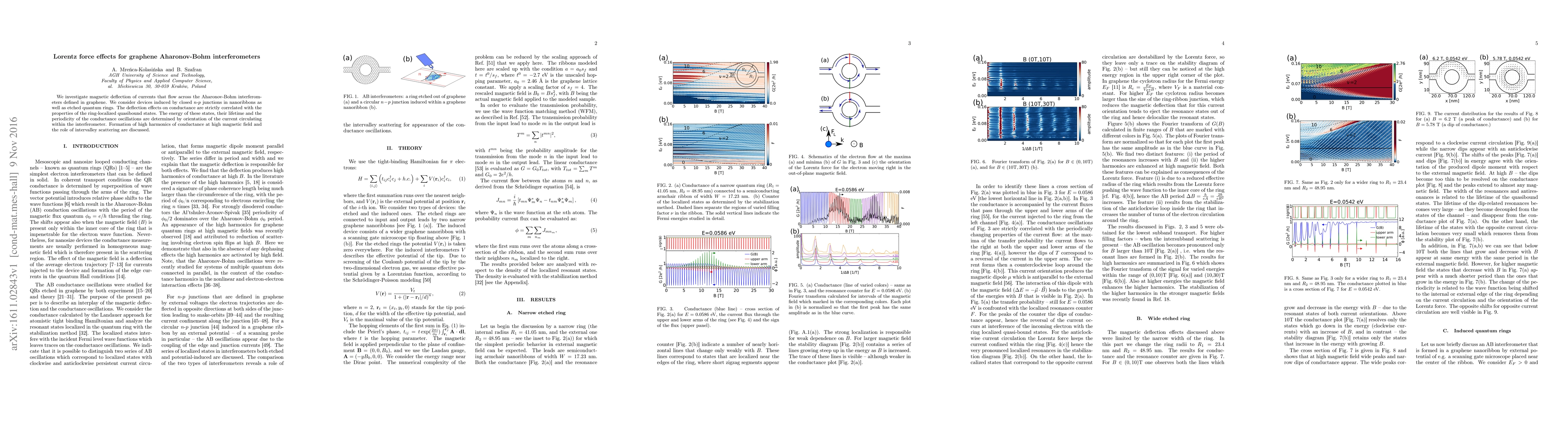 This study examines the Lorentz force's impact on current flow in graphene-based Aharonov-Bohm interferometers, finding that conductance deflection correlates with the properties of ring-localized quasibound states, influenced by current orientation and affected by intervalley scattering and high harmonics at high magnetic fields.