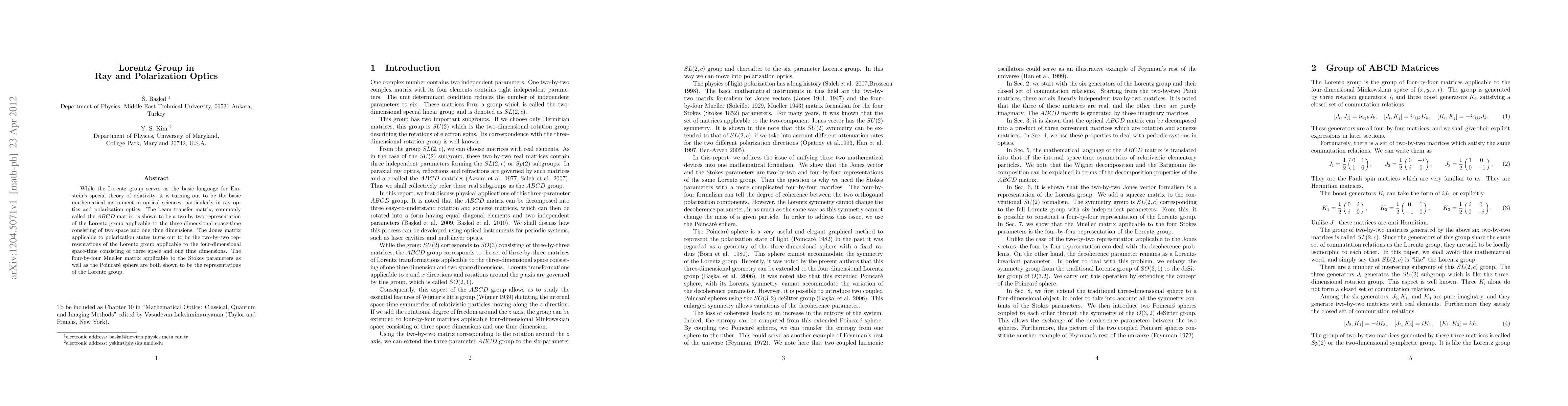 While the Lorentz group serves as the basic language for Einstein's special theory of relativity, it is turning out to be the basic mathematical instrument in optical sciences, particularly in ray optics and polarization optics. The beam transfer matrix, commonly called the $ABCD$ matrix, is shown to be a two-by-two representation of the Lorentz group applicable to the three-dimensional space-time consisting of two space and one time dimensions. The Jones matrix applicable to polarization states turns out to be the two-by-two representations of the Lorentz group applicable to the four-dimensional space-time consisting of three space and one time dimensions. The four-by-four Mueller matrix applicable to the Stokes parameters as well as the Poincar\'e sphere are both shown to be the representations of the Lorentz group.