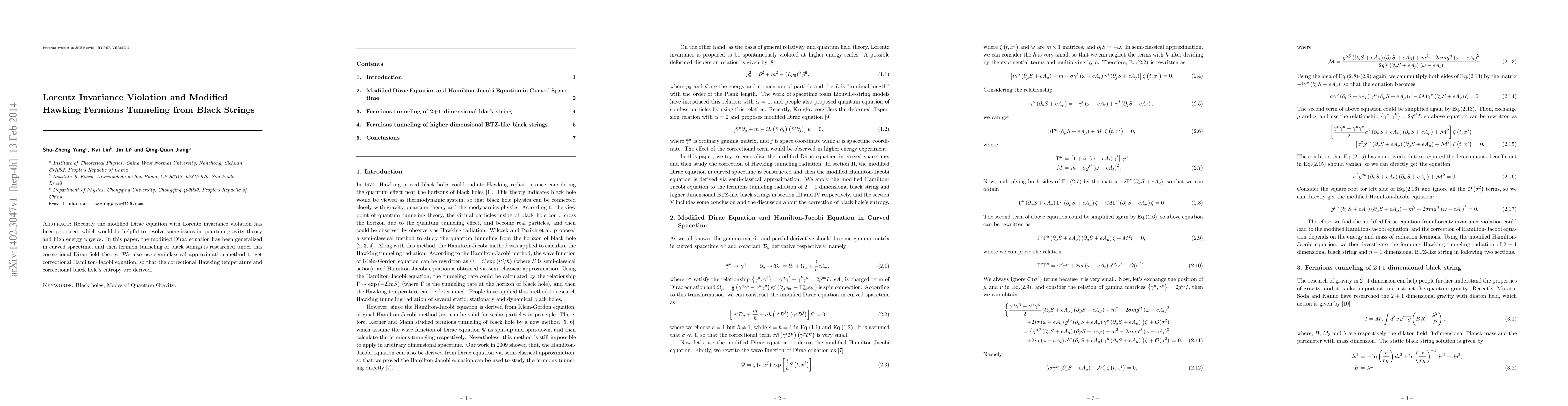 This paper generalizes a modified Dirac equation with Lorentz invariance violation to curved spacetime and applies it to study fermion tunneling from black strings. It derives a corrected Hawking temperature and entropy using a semi-classical approximation method.