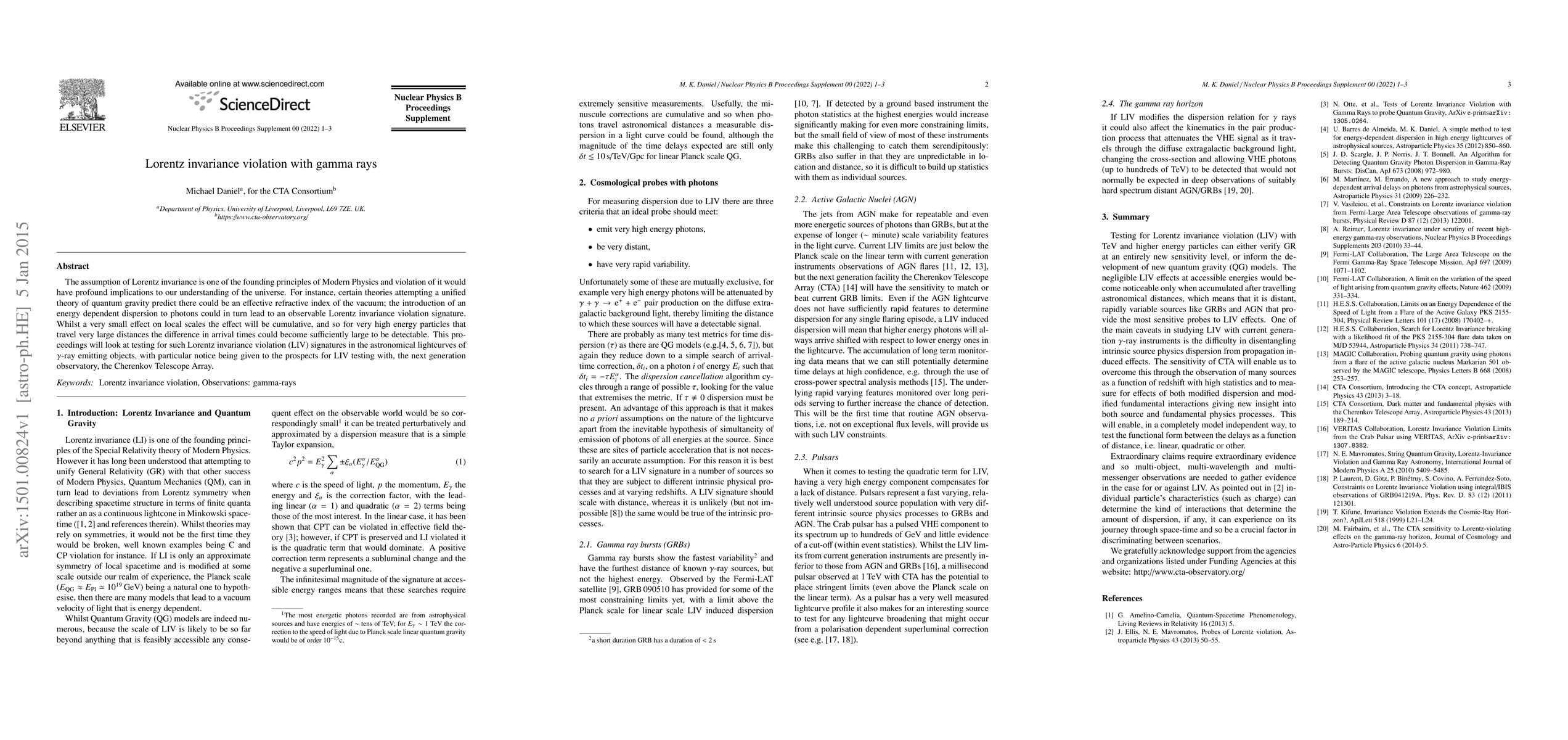 This paper investigates the potential violation of Lorentz invariance in gamma rays, a foundational principle of modern physics, by examining the arrival times of high-energy photons from gamma-ray emitting objects. It focuses on the prospects for detecting such violations using the Cherenkov Telescope Array, a next-generation observatory.