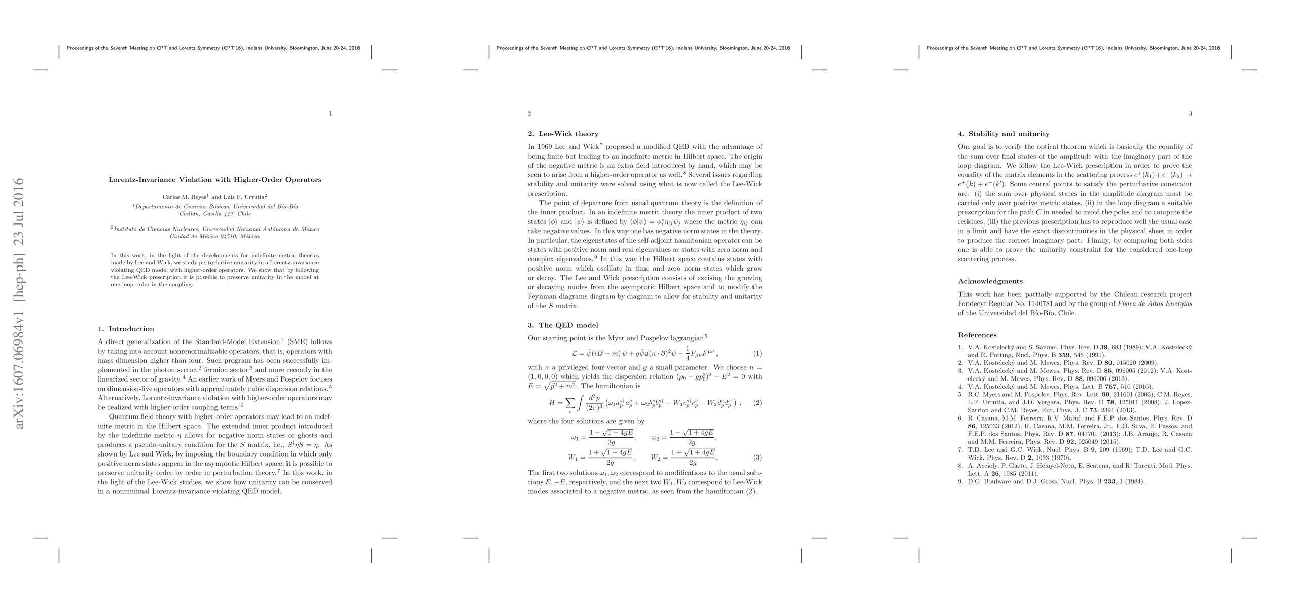 This paper investigates perturbative unitarity in a Lorentz-invariance violating QED model using higher-order operators, demonstrating that the Lee-Wick prescription allows for unitarity preservation at one-loop order in the coupling.