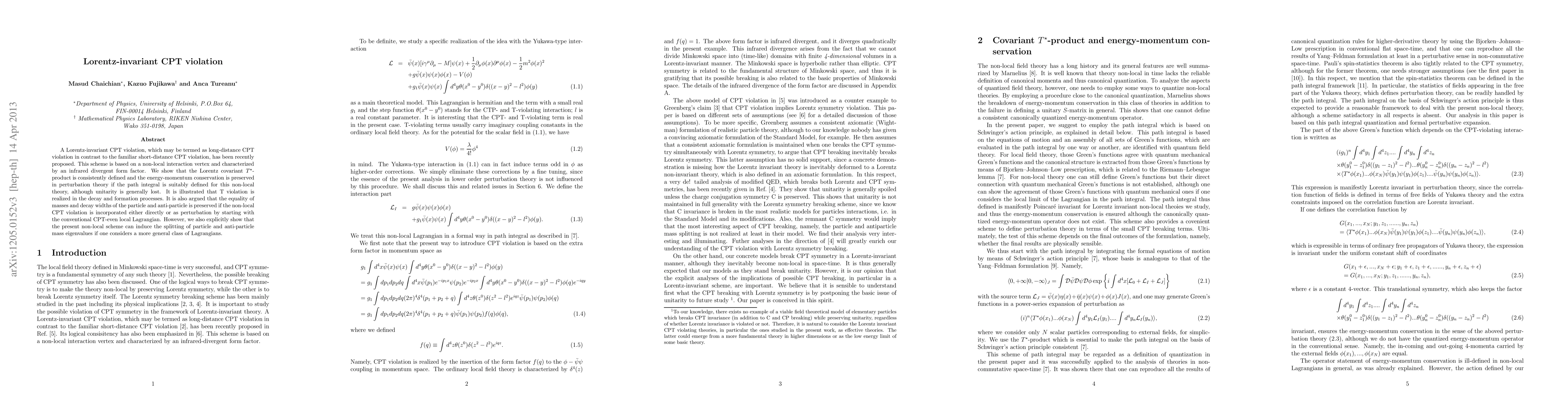 This paper proposes a Lorentz-invariant CPT violation termed long-distance CPT violation, based on a non-local interaction vertex. It shows that while energy-momentum conservation and equality of particle-antiparticle masses/decay widths are preserved in certain frameworks, the scheme can induce mass splitting under more general Lagrangians, leading to unitarity loss.