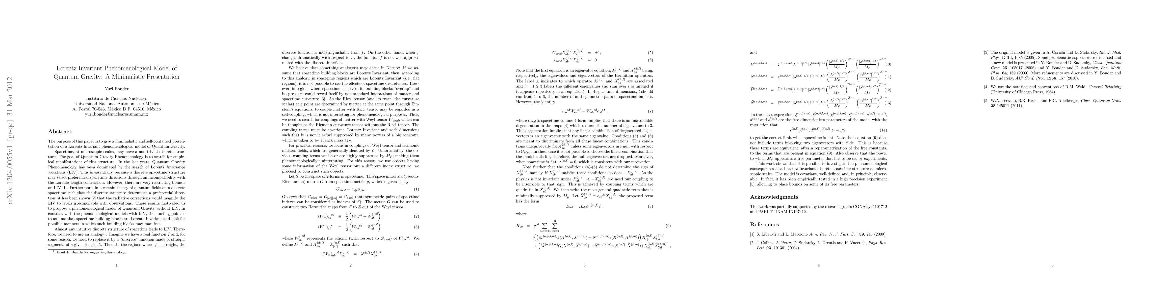 Summary: This paper presents a simplified, self-contained model of Quantum Gravity that maintains Lorentz invariance, aiming to provide a clear and accessible introduction to the subject. The model focuses on minimalistic principles to elucidate fundamental aspects of quantum gravitational phenomena.