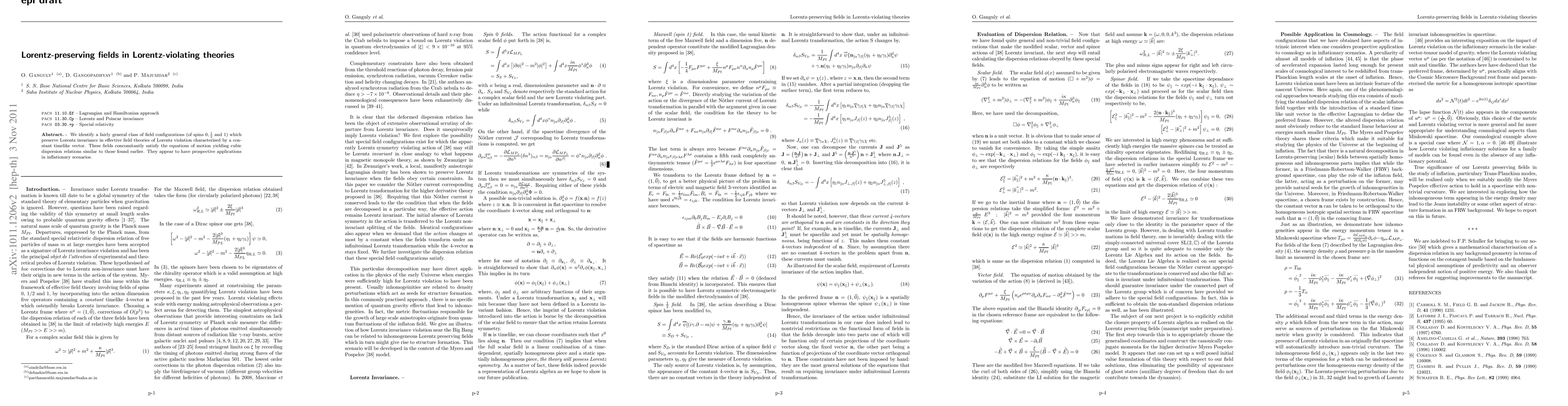 Researchers identified field configurations that preserve Lorentz invariance in theories with Lorentz violation, with potential applications in inflationary scenarios.