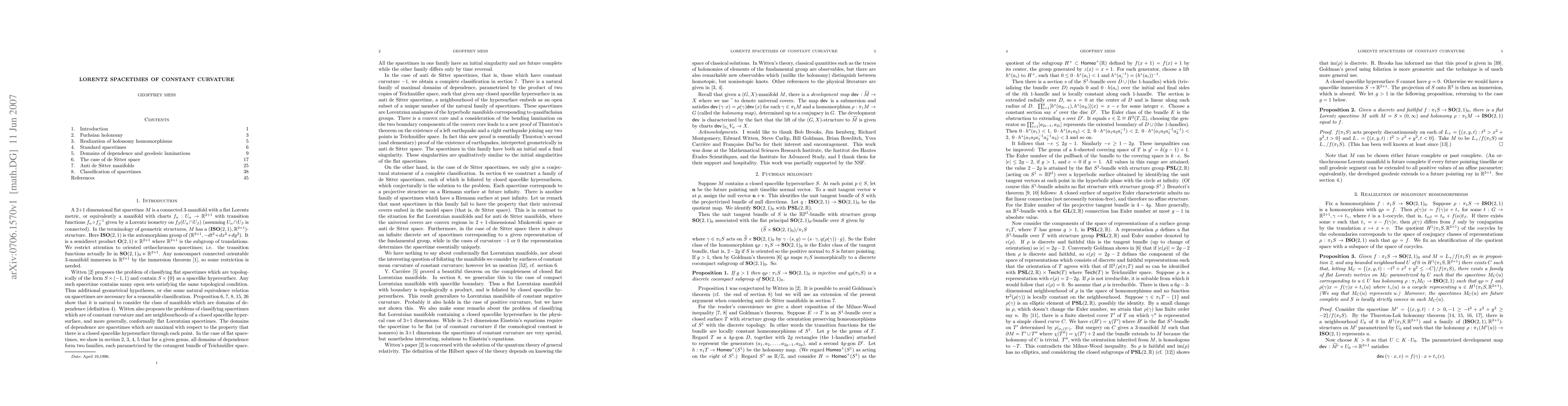This paper was first written in 1990, but was never published. In it, the author presents a novel approach to the study of constant curvature spacetimes in 2+1 dimensions. A parameterization of flat 2+1-dimensional domains of dependence is given in terms of measured geodesic laminations. There is also an interesting reinterpretation of Thurston's Earthquake Theorem involving anti-de Sitter spacetimes. With the permission of the author, it will be published for the first time in a forthcoming issue of Geometriae Dedicata, together with detailed "notes" outlining the developments in the field in the intervening years. The version posted here is nearly identical to the original; we merely corrected typographical errors and occasional notational mistakes, and also updated the references in the bibliography.