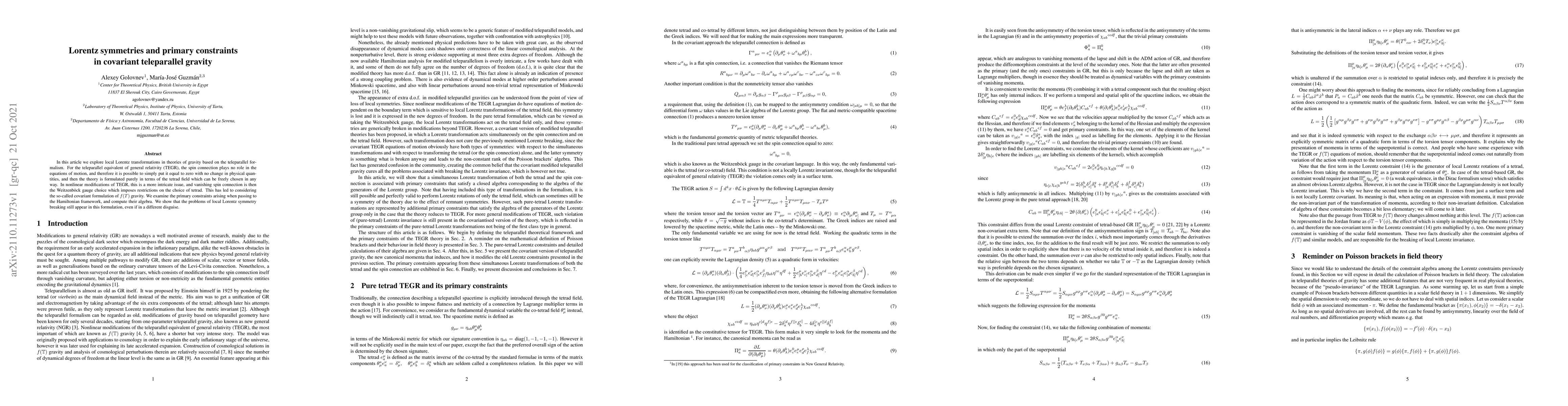 In this article we explore local Lorentz transformations in theories of gravity based on the teleparallel formalism. For the teleparallel equivalent of general relativity (TEGR), the spin connection plays no role in the equations of motion, and therefore it is possible to simply put it equal to zero with no change in physical quantities, and then the theory is formulated purely in terms of the tetrad field which can be freely chosen in any way. In nonlinear modifications of TEGR, this is a more intricate issue, and vanishing spin connection is then the Weitzenb\"{o}ck gauge choice which imposes restrictions on the choice of tetrad. This has led to considering the so-called covariant formulation of $f(T)$ gravity. We examine the primary constraints arising when passing to the Hamiltonian framework, and compute their algebra. We show that the problems of local Lorentz symmetry breaking still appear in this formulation, even if in a different disguise.