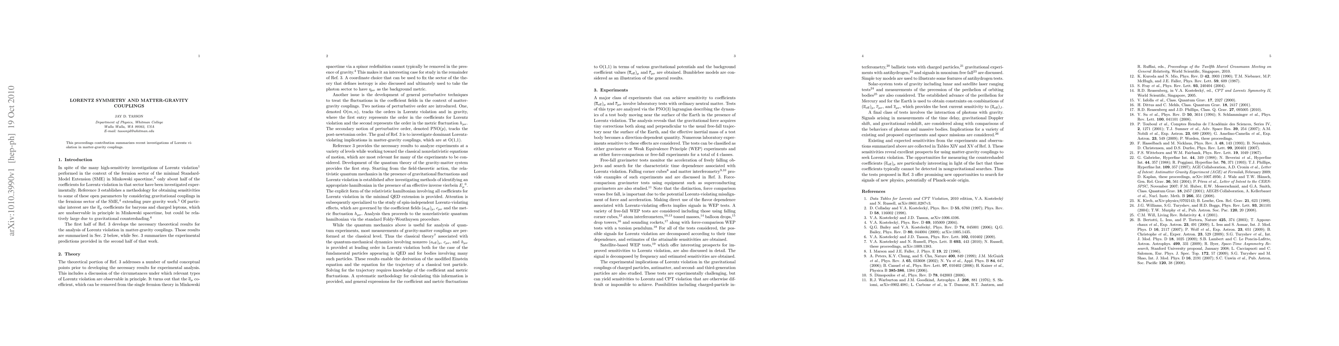 Summary: This paper reviews recent studies on potential violations of Lorentz symmetry in the interactions between matter and gravity, highlighting new insights and theoretical frameworks.