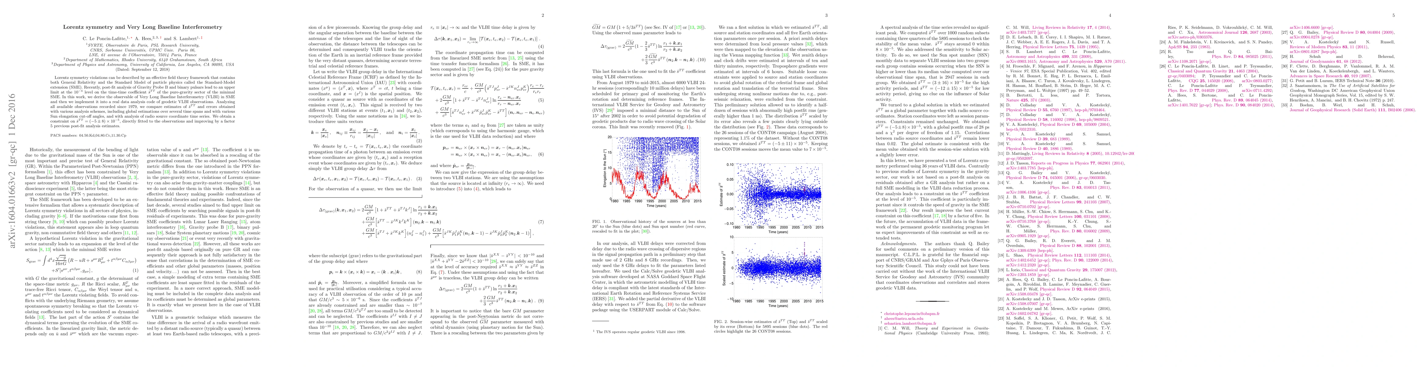 This paper investigates Lorentz symmetry violations using Very Long Baseline Interferometry (VLBI) within the Standard-Model extension (SME) framework. The study derives an observable for VLBI, applies it to geodetic VLBI data, and constrains the time-time coefficient $\bar s^{TT}$ to $(-5\pm 8)\times 10^{-5}$, improving previous estimates by a factor of 5.