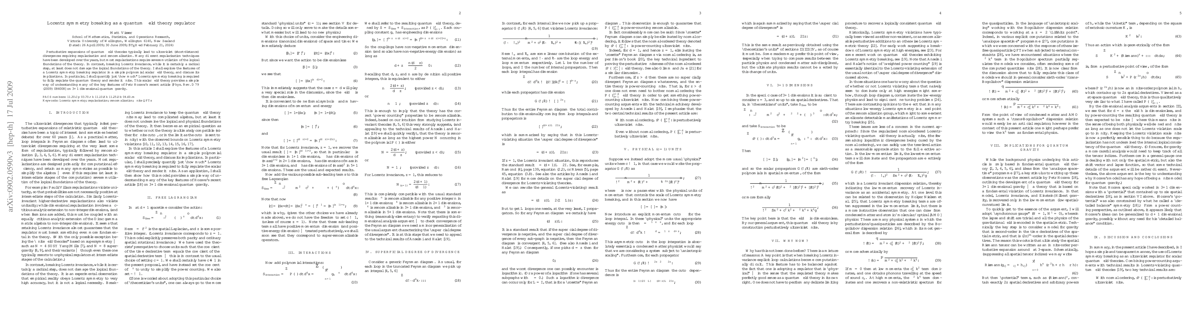 This paper explores using Lorentz symmetry breaking as a regularization method in quantum field theory to avoid ultraviolet divergences without compromising the theory's logical foundations. It examines a simple scalar field theory to quantify the degree of symmetry breaking needed to achieve a finite theory, drawing parallels to Horava's work on 3+1 dimensional quantum gravity.
