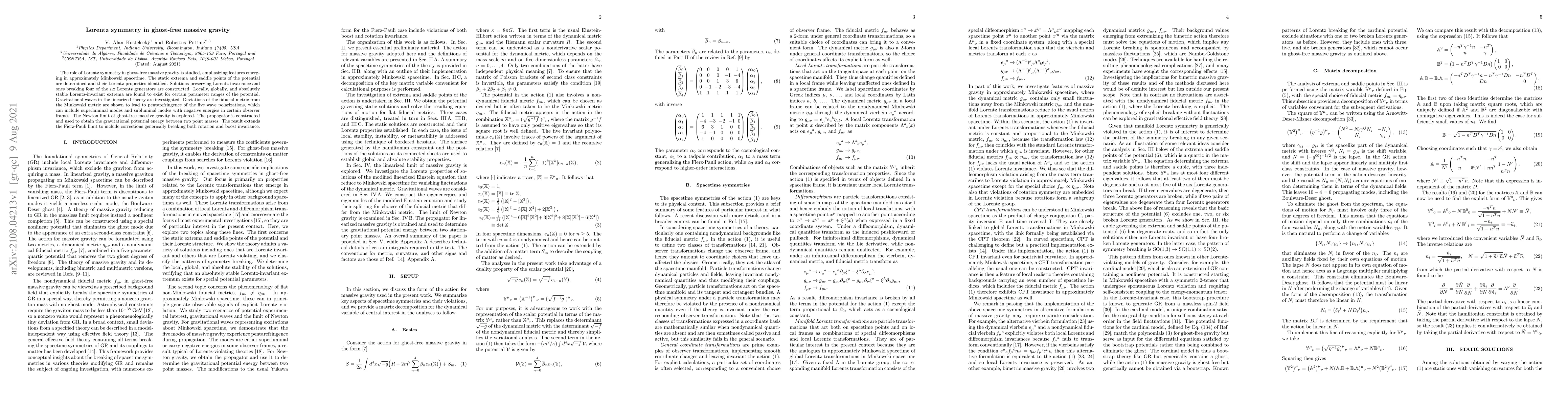 This paper investigates Lorentz symmetry in ghost-free massive gravity, identifying stable Lorentz-invariant solutions and exploring deviations from Minkowski spacetime that lead to pentarefringence in gravitational waves. It also extends the Fierz-Pauli limit to include corrections breaking both rotation and boost invariance.