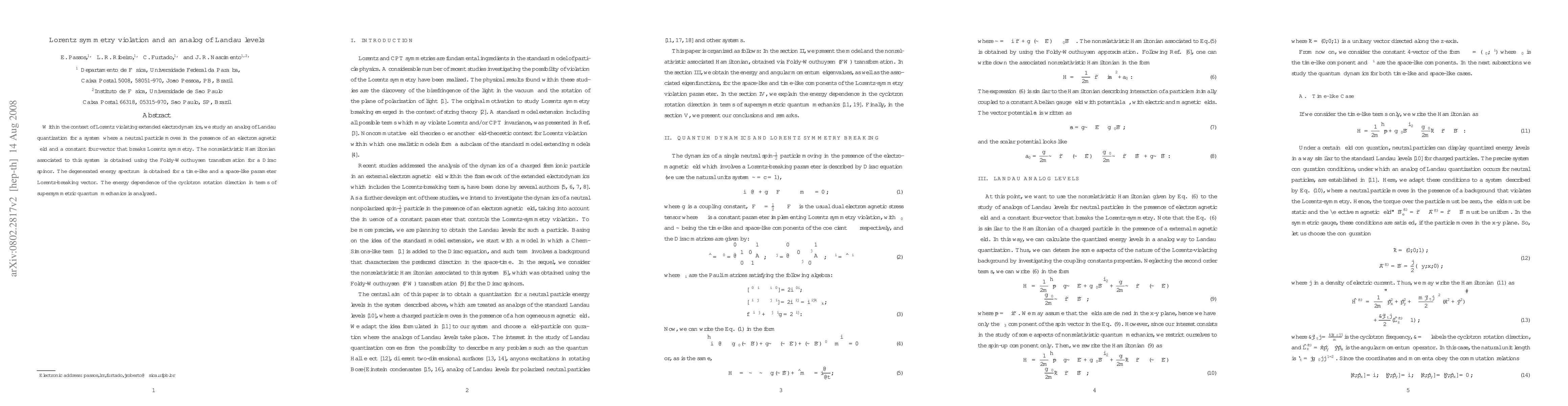 This paper investigates Lorentz symmetry violation in extended electrodynamics, focusing on an analog of Landau quantization for neutral particles under electromagnetic fields and a Lorentz-breaking constant four-vector. It employs the Foldy-Wouthuysen transformation to derive a nonrelativistic Hamiltonian and examines the energy spectrum and cyclotron rotation direction.