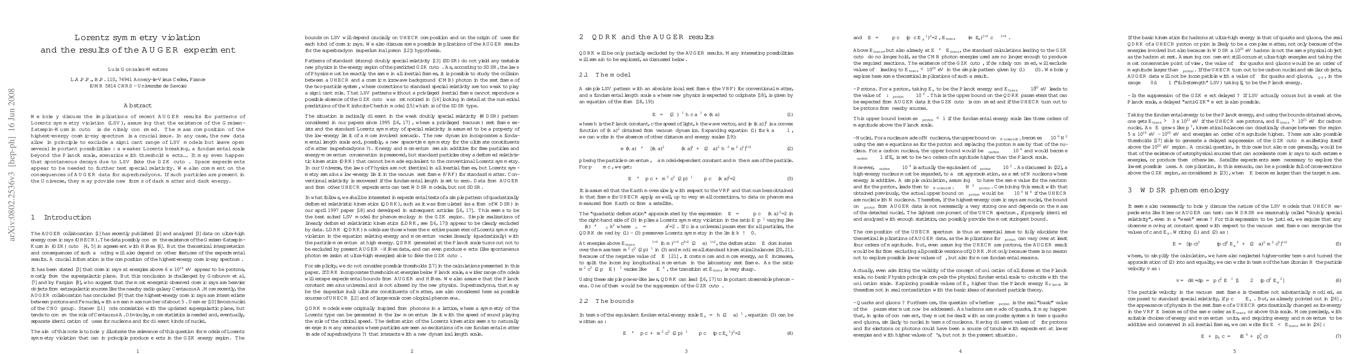 We briefly discuss the implications of recent AUGER results for patterns of Lorentz symmetry violation (LSV), assuming that the existence of the Greisen-Zatsepin-Kuzmin cutoff is definitely confirmed. The mass composition of the highest-energy cosmic-ray spectrum is a crucial issue. In any case, the new data allow in principle to exclude a significant range of LSV models but leave open several important possibilities : a weaker Lorentz breaking, a fundamental scale beyond the Planck scale, scenarios with threshold effects... It may even happen that spontaneous decays due to LSV fake the GZK cutoff. Space experiments appear to be needed to further test special relativity. We also comment on the consequences of AUGER data for superbradyons. If such particles are present in the Universe, they may provide new forms of dark matter and dark energy.