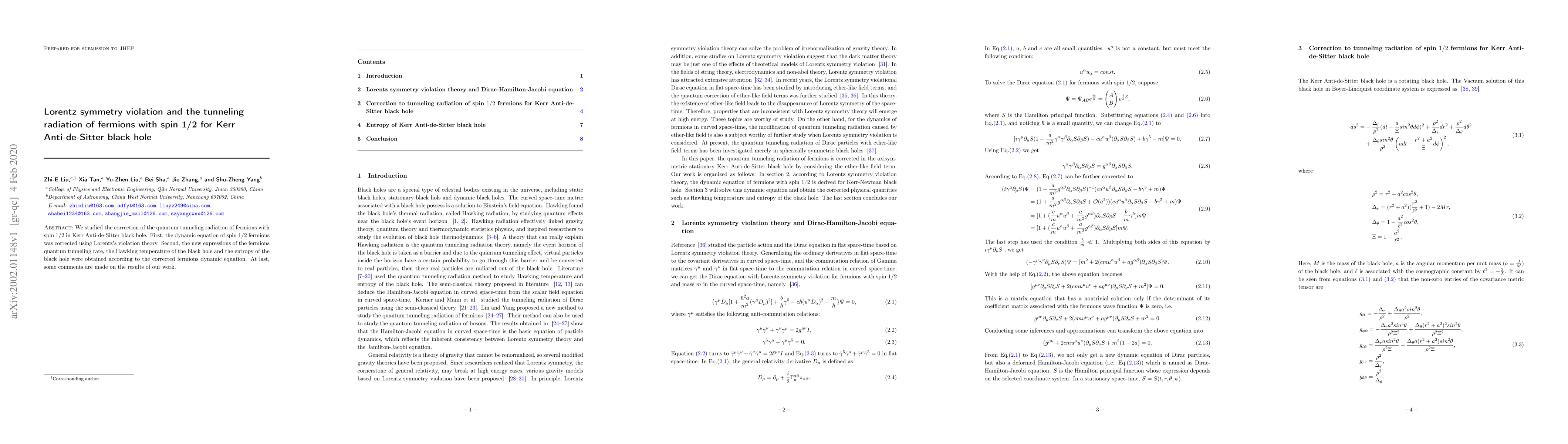 This paper investigates the quantum tunneling radiation of spin $1/2$ fermions in a Kerr Anti-de-Sitter black hole, incorporating Lorentz symmetry violation. It derives new expressions for the tunneling rate, Hawking temperature, and black hole entropy based on the corrected dynamic equation for fermions.