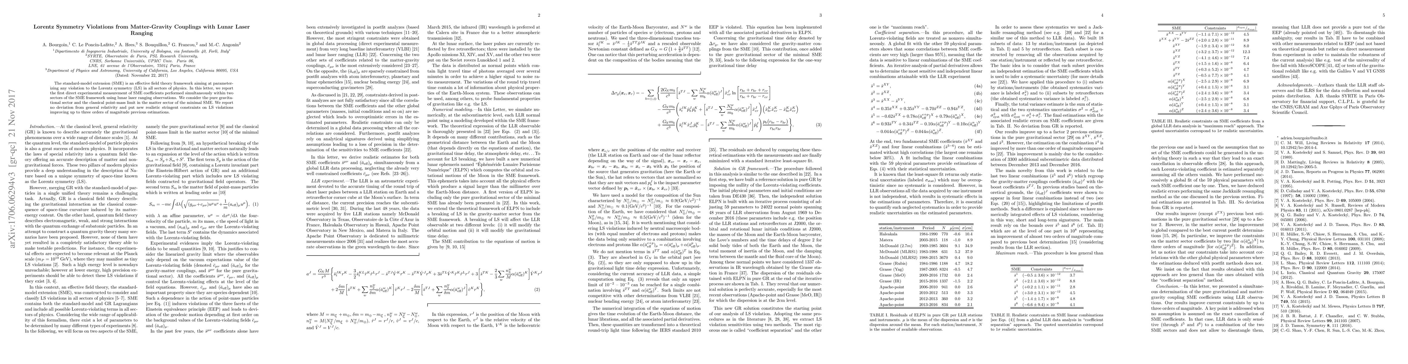This paper reports the first direct experimental measurement of Lorentz symmetry violations using lunar laser ranging, focusing on the pure gravitational and classical point-mass sectors of the standard-model extension. The results show no deviations from general relativity and significantly improve previous constraints on Lorentz symmetry violations by up to three orders of magnitude.