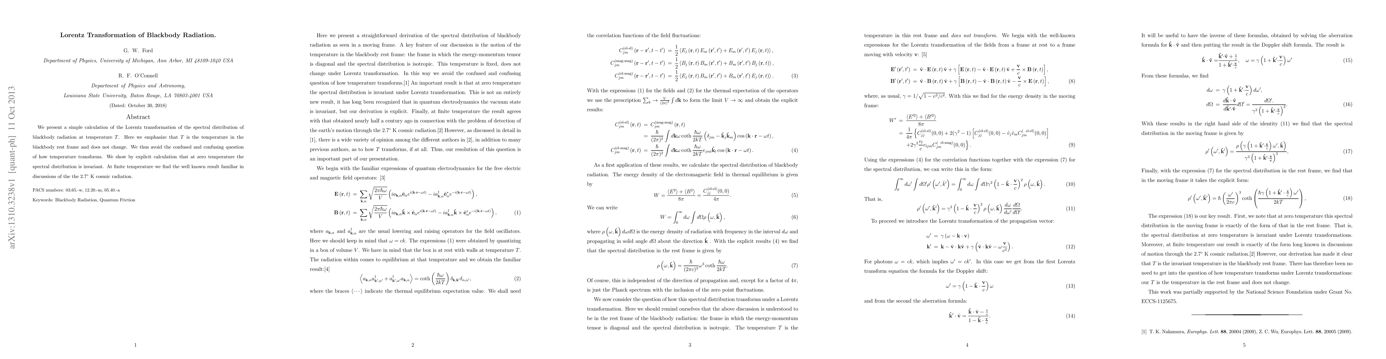 We present a simple calculation of the Lorentz transformation of the spectral distribution of blackbody radiation at temperature T. Here we emphasize that T is the temperature in the blackbody rest frame and does not change. We thus avoid the confused and confusing question of how temperature transforms. We show by explicit calculation that at zero temperature the spectral distribution is invariant. At finite temperature we find the well known result familiar in discussions of the the 2.7! K cosmic radiation.