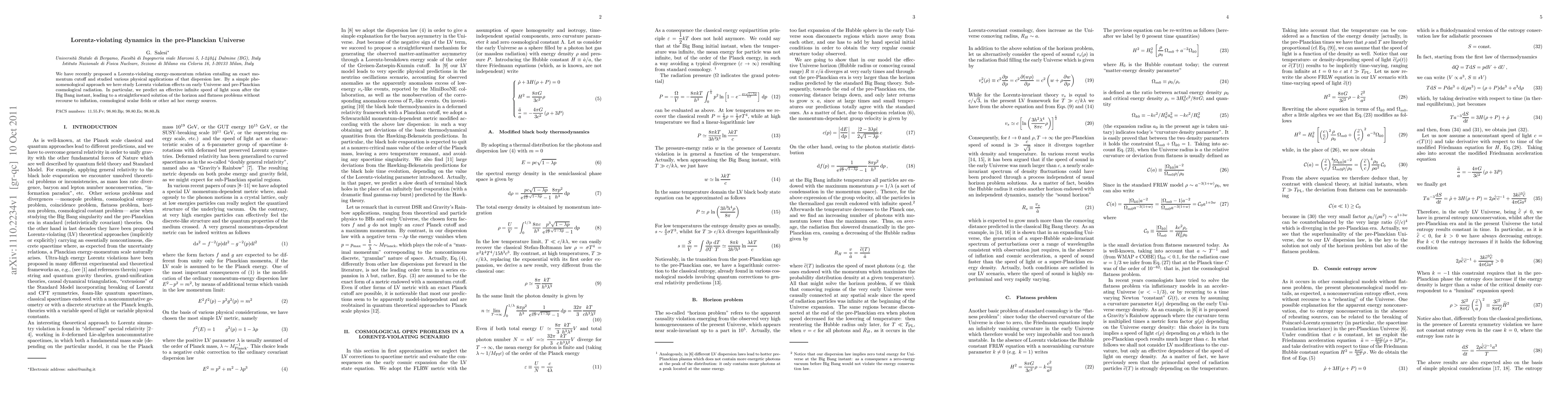 This paper investigates Lorentz-violating dynamics in the early Universe, proposing an energy-momentum relation that predicts an effective infinite speed of light shortly after the Big Bang, thereby offering a solution to the horizon and flatness problems without invoking inflation or other ad hoc mechanisms.