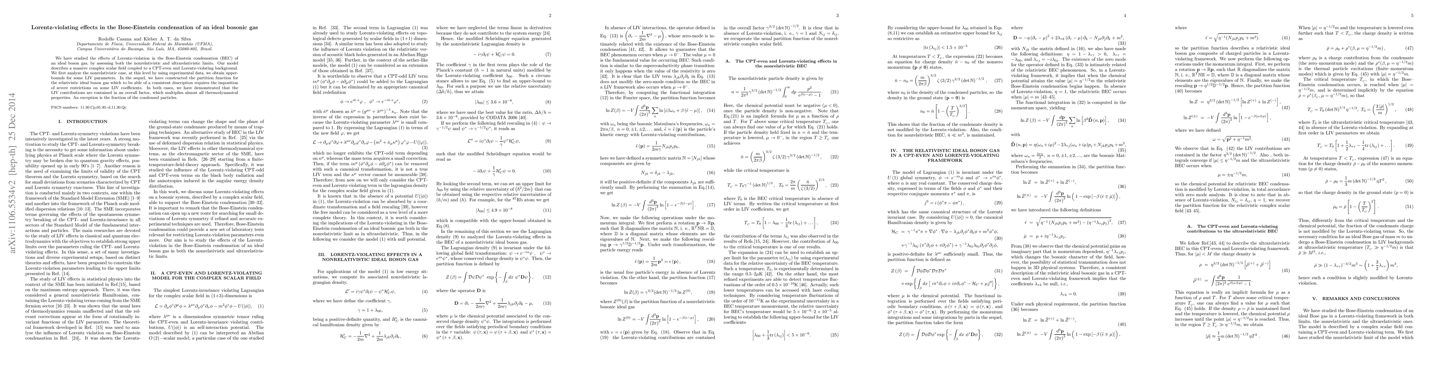 This paper investigates the impact of Lorentz-violation (LIV) on Bose-Einstein condensation in an ideal bosonic gas, analyzing both nonrelativistic and ultrarelativistic scenarios. The study reveals that LIV contributions modify thermodynamic properties but notably affect the fraction of condensed particles differently.