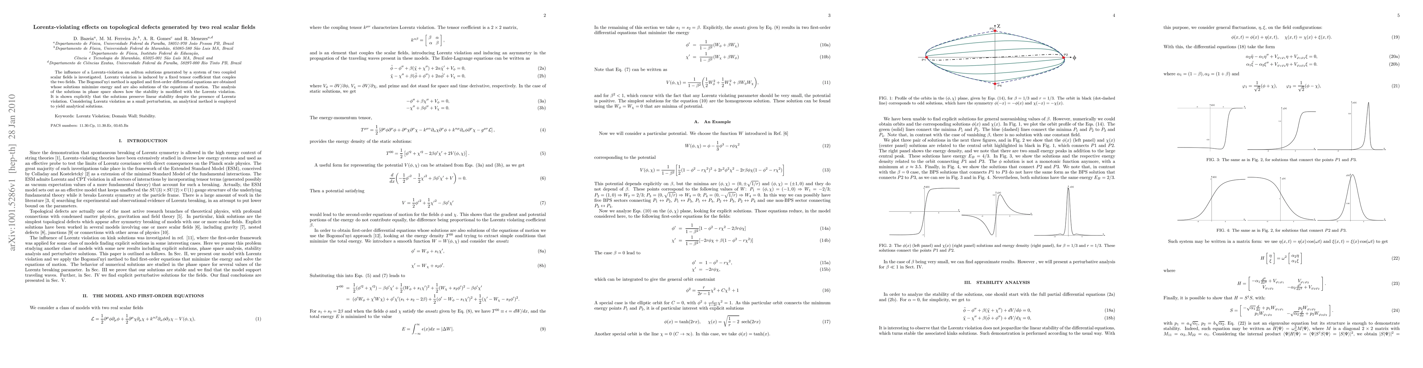 The influence of a Lorentz-violation on soliton solutions generated by a system of two coupled scalar fields is investigated. Lorentz violation is induced by a fixed tensor coefficient that couples the two fields. The Bogomol'nyi method is applied and first-order differential equations are obtained whose solutions minimize energy and are also solutions of the equations of motion. The analysis of the solutions in phase space shows how the stability is modified with the Lorentz violation. It is shown explicitly that the solutions preserve linear stability despite the presence of Lorentz violation. Considering Lorentz violation as a small perturbation, an analytical method is employed to yield analytical solutions.